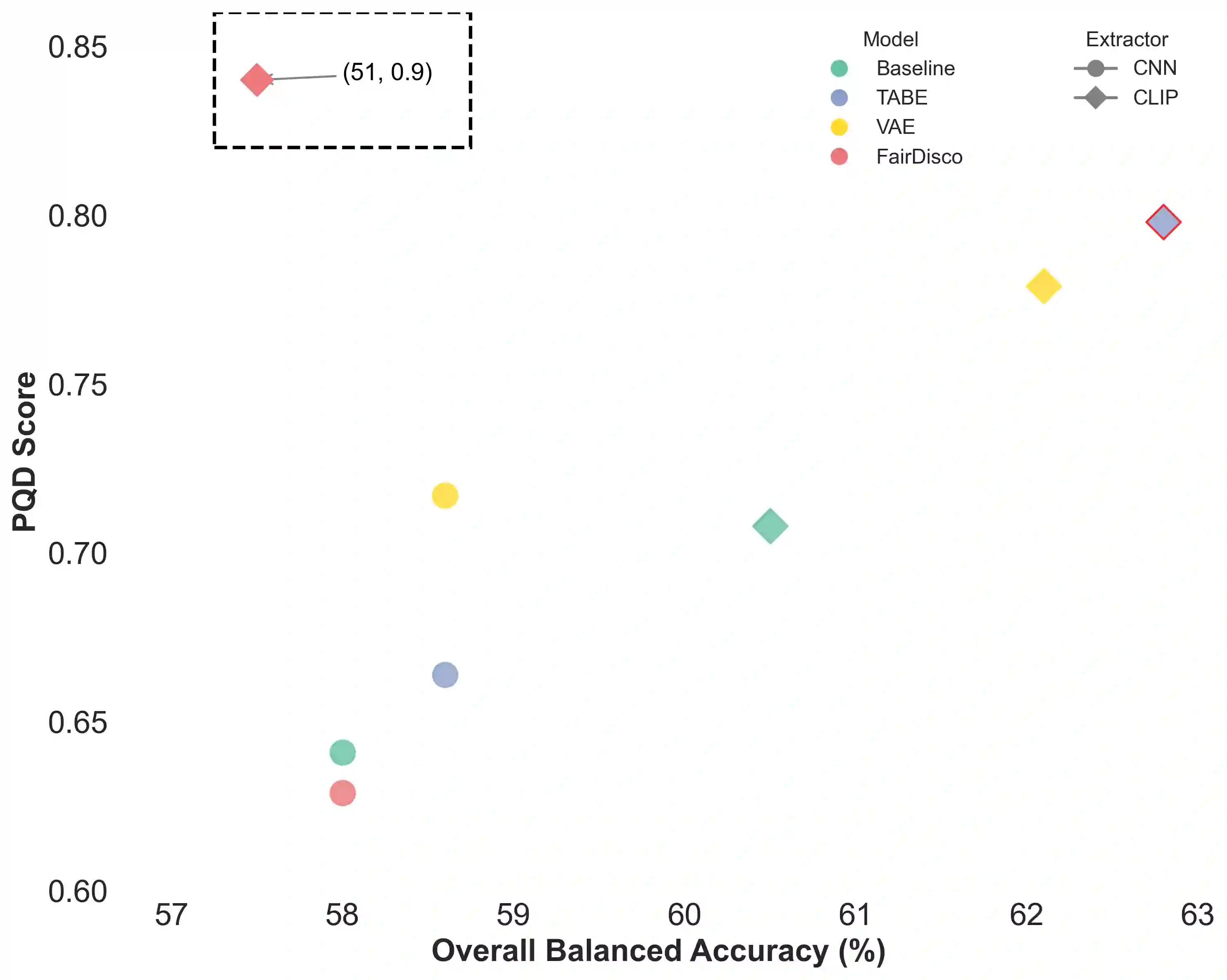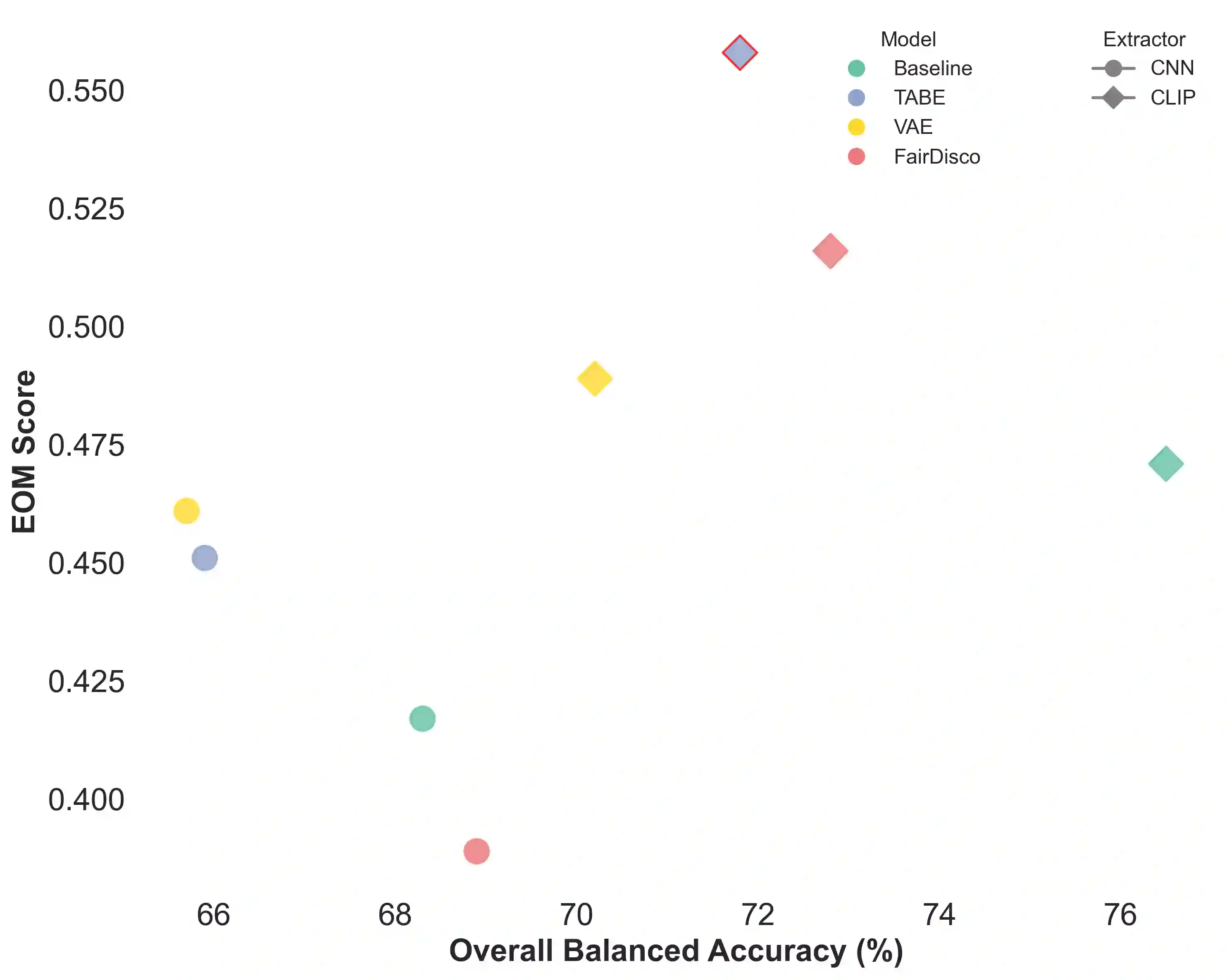 翻译:在皮肤病学领域,人工智能的临床应用中,偏见仍然是一个主要障碍,因为诊断模型在较深肤色上的表现不佳。我们提出了LesionTABE,这是一个以公平性为中心的框架,它将对抗性去偏与皮肤病学专用基础模型嵌入相结合。在涵盖恶性和炎症性病变的多个数据集上进行评估后,与ResNet-152基线相比,LesionTABE在公平性指标上实现了超过25%的提升,其性能优于现有的去偏方法,同时提高了整体诊断准确性。这些结果凸显了基础模型去偏作为迈向公平临床人工智能应用的一步所具有的潜力。