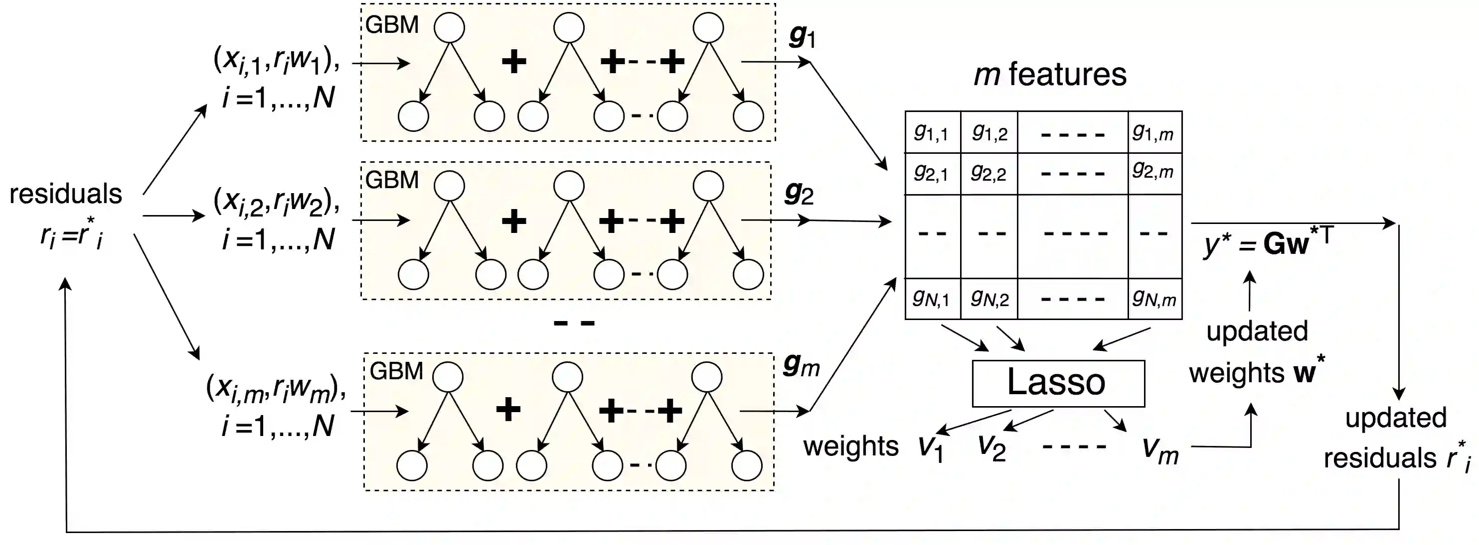 翻译:根据众所周知的通用添加型模型,提出了对黑盒模型进行当地和全球解释的方法;可以视之为使用神经添加型模型的算法的延伸或修改;该方法的基础是使用一组梯度助推机(GBM),使每个GBM在单一特性上学习,并产生特征的形状功能;该组合由分别的GBM的加权总和组成,形成通用添加型模型的形状函数加权总和;GBM是同时建造的,使用的是深度1的随机决定树,提供非常简单的结构;在每次推进迭代中使用Lasso方法计算GBMs和特征,然后通过具体的平滑程序加以更新;与神经添加型模型相比,该方法提供了明确形式的特征的权重,而且仅经过培训;许多采用合成和真实数据集拟议方法的算法的数值实验,显示了其效率和特性,供当地和全球解释。