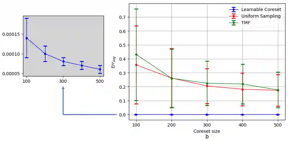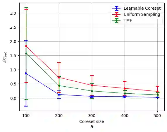 翻译:给定的数据集和损失函数的核心集通常是一个小的称重的集合, 与给定的一组查询的每个查询的这一损失相近。 核心集显示在许多应用中非常有用。 但是, 核心集的构造是以一种取决于问题的方式完成的, 可能要花几年时间来设计和证明特定查询组核心集的正确性。 这可能会限制在实际应用中使用的核心集。 此外, 小核心集对于许多问题并不存在。 为了解决这些局限性, 我们为构建核心集提出了一种通用的、 学习性的算法。 我们的方法为构建核心集提供了一个新的定义。 我们的方法提供了一种对核心集的新定义, 这是对标准定义的自然放松, 目的是在查询的原始数据中接近 emph{ 平均 。 这使我们能够用学习的范式来对特定损失函数的一组小核心集进行拼凑。 我们为拟议的方法提供了正式的保证。 对深层次网络和经典机器学习问题的实验性评估表明, 我们所学过的核心小组集在深度网络中产生可比较的或更好的结果。 最深层次的计算方法可能由最坏的理论级的网络提供最深层次的保证, 。