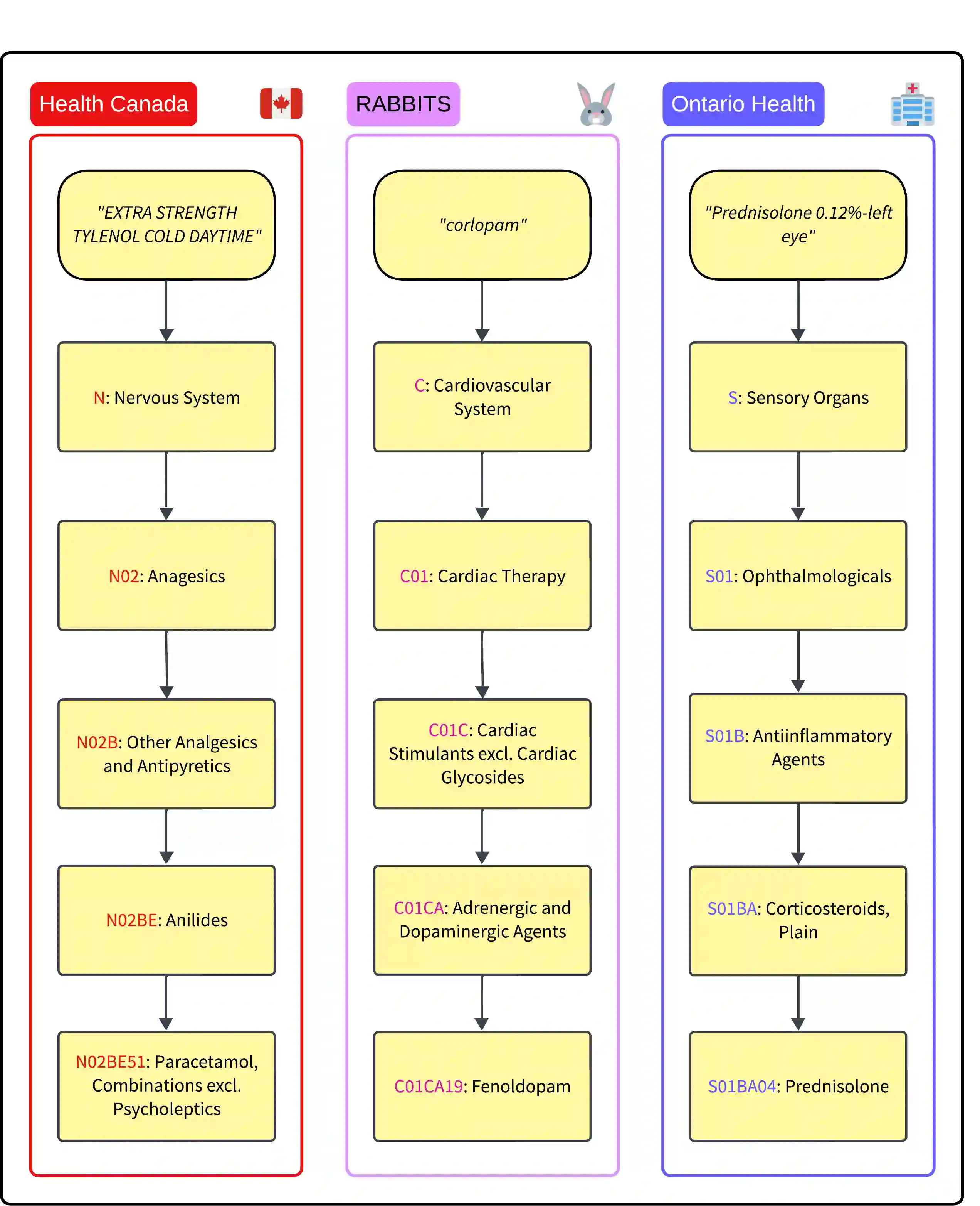 Manual assignment of Anatomical Therapeutic Chemical (ATC) codes to prescription records is a significant bottleneck in healthcare research and operations at Ontario Health and InterRAI Canada, requiring extensive expert time and effort. To automate this process while maintaining data privacy, we develop a practical approach using locally deployable large language models (LLMs). Inspired by recent advances in automatic International Classification of Diseases (ICD) coding, our method frames ATC coding as a hierarchical information extraction task, guiding LLMs through the ATC ontology level by level. We evaluate our approach using GPT-4o as an accuracy ceiling and focus development on open-source Llama models suitable for privacy-sensitive deployment. Testing across Health Canada drug product data, the RABBITS benchmark, and real clinical notes from Ontario Health, our method achieves 78% exact match accuracy with GPT-4o and 60% with Llama 3.1 70B. We investigate knowledge grounding through drug definitions, finding modest improvements in accuracy. Further, we show that fine-tuned Llama 3.1 8B matches zero-shot Llama 3.1 70B accuracy, suggesting that effective ATC coding is feasible with smaller models. Our results demonstrate the feasibility of automatic ATC coding in privacy-sensitive healthcare environments, providing a foundation for future deployments.