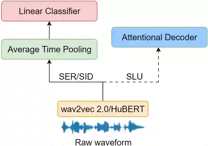 翻译:诸如 wav2vec 2. 0 和 HuBERT 等自我监督的演讲模式在自动语音识别方面正在取得革命性的进展。 但是,它们并没有被完全证明能产生比 ASR 更好的业绩。 在这项工作中,我们探索了对 wav2vec 2.0 和 HubaERT 三个非ASR 演讲任务经过培训的模型进行部分微调和整个微调: 语音识别、 发言人核查和口语理解。 有了简单的下游框架, 最佳评分达到79.58%的加权精确度, VoxCeleb 语音识别的加权精确度为2.36%, VentCeleb1 的演讲者校验率为8.38%, Intelcation 精确度为89.38%, SLURP 填充时为78.92% F1, 从而为三种基准设定了新的艺术水平,显示了微调 wav2vec 2.0 和 HuBERT 模型在学习Prosodic、语音和语义表达方式方面的强大力量。