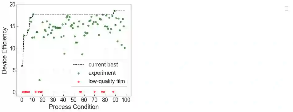翻译:过去十年来,在小型实验室设备电流转换效率方面, Perovskite光伏伏(PV)实现了快速的快速发展;然而,成功的商业化仍然需要进一步开发低成本、可缩放和高通量制造技术。 开发新制造技术的主要挑战之一是高维参数空间和机器学习(ML),可以用来加速光伏渗透率的缩放。在这里,我们提出了一个ML指导的制造流程优化连续学习框架。我们将我们的方法应用于快速喷射等离子膜处理技术(RSPP),用于环境条件下的渗透薄薄膜。在有限的实验预算筛选100个条件过程条件下,我们展示了效率提高至18.5%的最佳装置,我们还在实验中发现了10个独特的条件,以产生超过17%的顶级效率装置,这比我们伪随机拉丁超立方取样的成功率高5倍。我们的模式通过三种创新得以实现。 (a)通过将先前实验性数据纳入下一个实验性数据,将微薄薄膜薄薄膜处理技术,将实验过程灵活地转移知识,作为软性精确的试测度预算,(b)在进行高水平的测试时,同时选择人类主观性设计区域。
