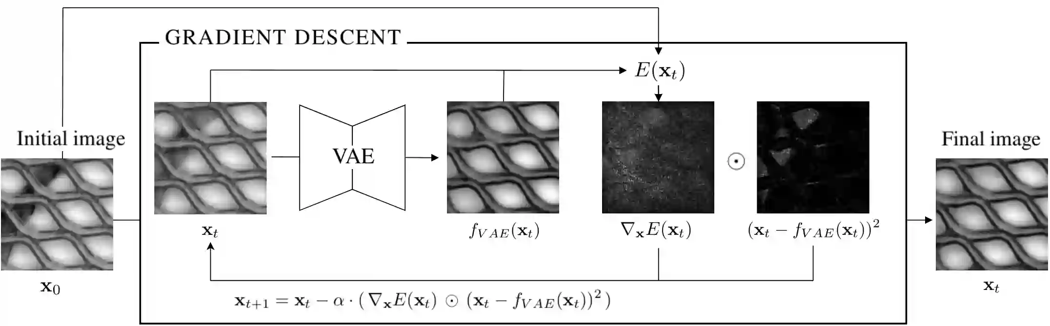 翻译:自动编码器重建被广泛用于不受监督的异常本地化任务。 事实上, 受过正常数据培训的自动编码器只能重建数据的正常特性, 通过简单比较图像和自动编码器重建, 将异常像素在图像中进行分解。 然而, 在实际中, 普通图像中添加的本地缺陷会恶化整个重建, 使这种分解具有挑战性。 为了解决这个问题, 我们在此文件中提出一种新的方法, 用来预测自动编码器获取的正常数据元件上的异常数据, 方法是在自动编码器丢失功能产生的能量上使用梯度脱落。 这种能量可以通过在构成用户定义的最佳投影的模型上使用正规化的术语来增加。 通过迭接更新自动编码器输入, 我们绕过由自动编码器瓶盖造成的高频信息损失。 这样可以生成质量高于经典重建的图像。 我们的方法可以在各种异常本地化数据集上取得状态的艺术结果 。 它还展示了Selpaimeb 任务中的数据结果 。
