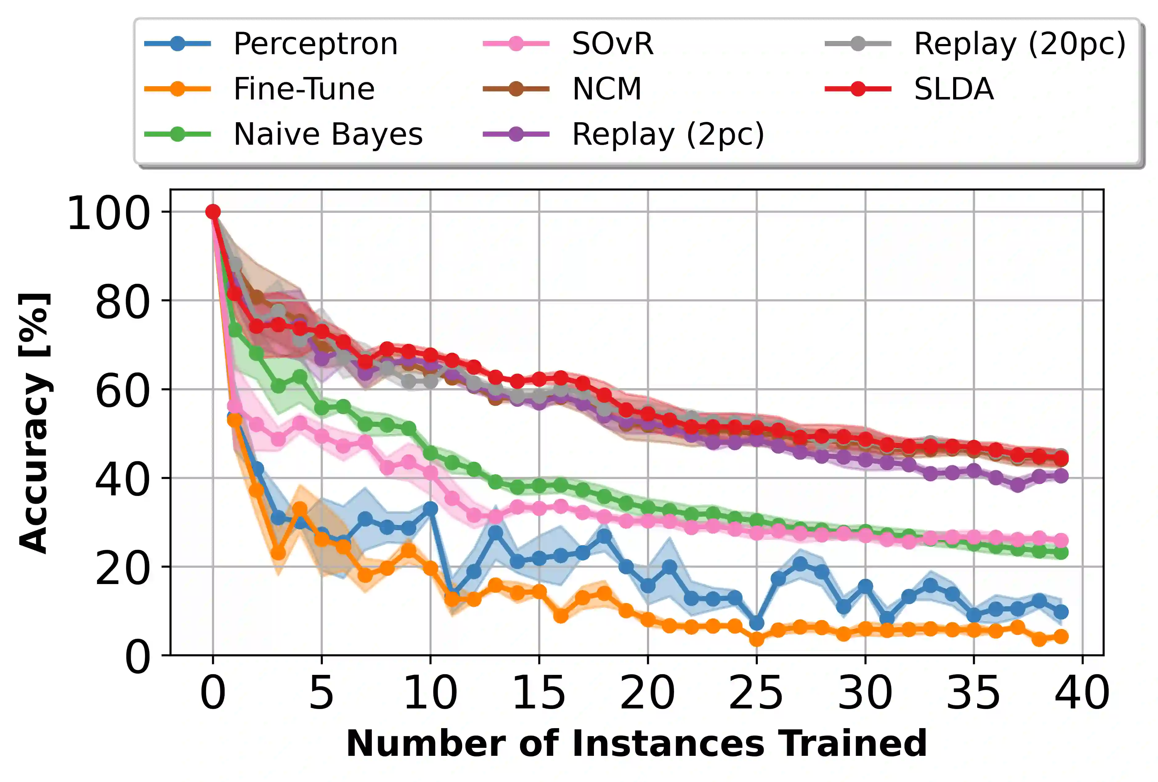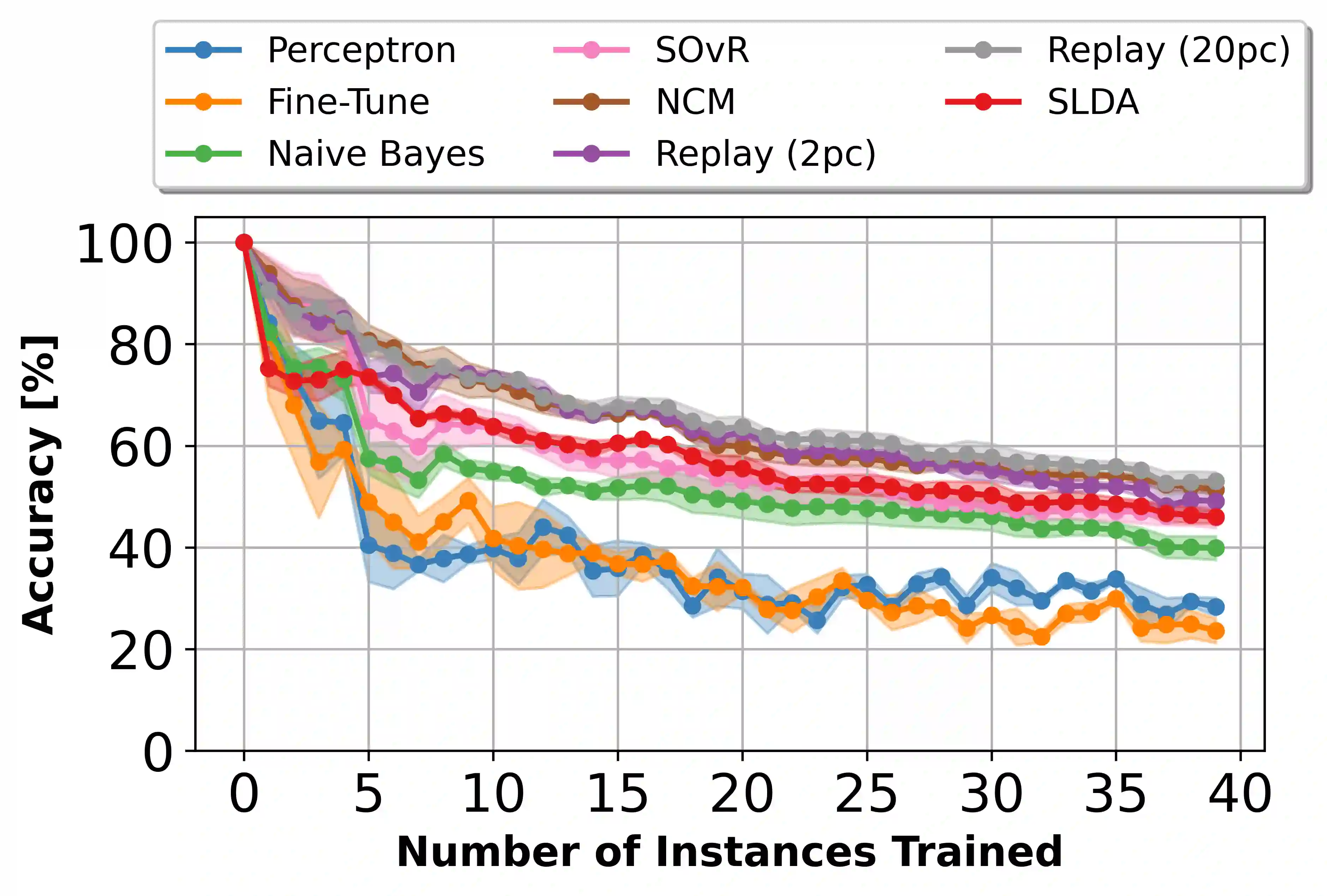 翻译:新应用软件,如家用机器人、智能手机用户个性化以及增强/虚拟现实耳机等,需要实时持续学习。然而,这种环境提出了独特的挑战:嵌入设备记忆有限,计算能力有限,常规机器学习模式在更新非静止数据流时,会遭受灾难性的遗忘。虽然开发了若干在线持续学习模式,但并未严格研究这些模式对嵌入应用程序的有效性。在本文件中,我们首先确定了在线持续学习者必须达到的标准,才能有效地实时、实时、即时学习。然后我们研究了移动神经网络使用的若干在线持续学习方法的功效。我们测量了这些方法的性能、记忆使用情况、计算要求,以及推广外部投入的能力。