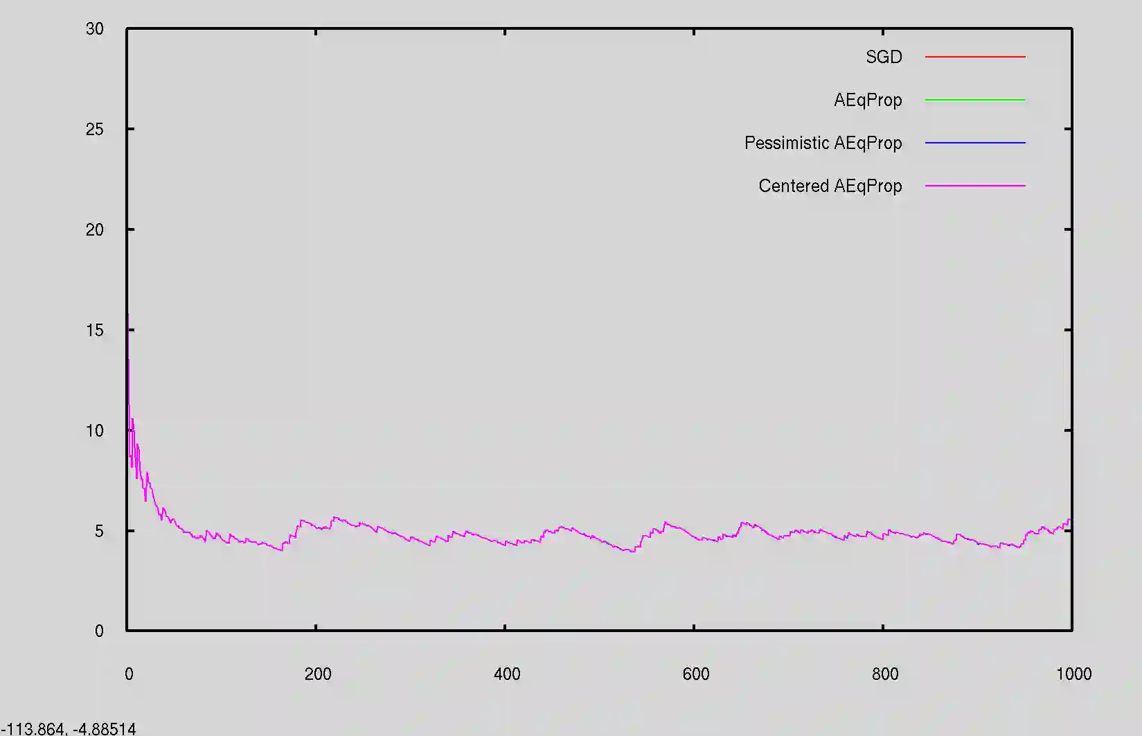 翻译:这项工作规定,物理系统可以通过将能源最小化、家庭主控和对准反应相结合的Aeqoprop(Aeqoprop)程序,在不进行梯度计算的情况下进行统计学习。 在Aeqprop, 系统的具体细节不必为人所知: 程序仅以外部操作为基础, 产生随机梯度梯度下降, 而没有明显的梯度计算。 由于裸体, 系统对每个培训样本都执行真实的、 顺序一梯度步骤, 而不是以试验和错误为依托的强化或进化战略等零级方法。 这一程序将统计学习的潜在硬件范围大大扩大到任何具有足够可控参数的系统, 即使系统的细节不为人所知。 Aeqeprop也规定,在自然(生物)物理系统中, 真正的梯度统计学习可能来自一般的、相对简单的机制, 不作反向调整, 也不要求分析部分衍生物。