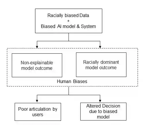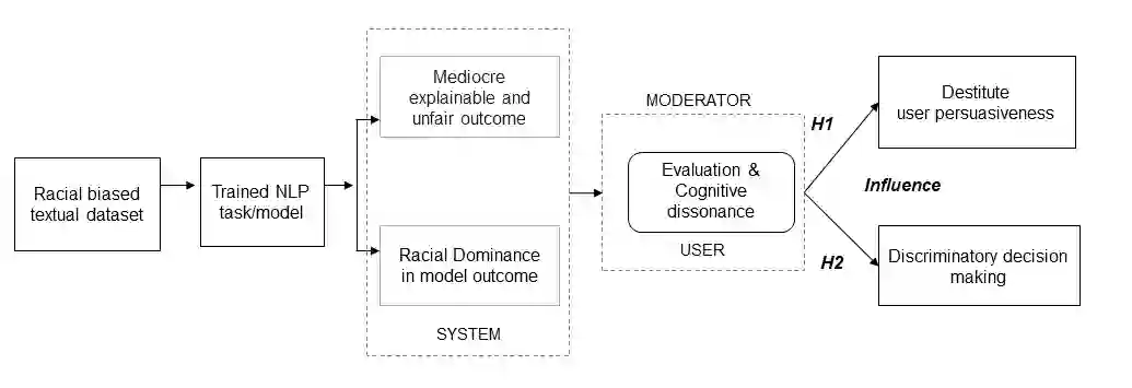 Language data and models demonstrate various types of bias, be it ethnic, religious, gender, or socioeconomic. AI/NLP models, when trained on the racially biased dataset, AI/NLP models instigate poor model explainability, influence user experience during decision making and thus further magnifies societal biases, raising profound ethical implications for society. The motivation of the study is to investigate how AI systems imbibe bias from data and produce unexplainable discriminatory outcomes and influence an individual's articulateness of system outcome due to the presence of racial bias features in datasets. The design of the experiment involves studying the counterfactual impact of racial bias features present in language datasets and its associated effect on the model outcome. A mixed research methodology is adopted to investigate the cross implication of biased model outcome on user experience, effect on decision-making through controlled lab experimentation. The findings provide foundation support for correlating the implication of carry-over an artificial intelligence model solving NLP task due to biased concept presented in the dataset. Further, the research outcomes justify the negative influence on users' persuasiveness that leads to alter the decision-making quotient of an individual when trying to rely on the model outcome to act. The paper bridges the gap across the harm caused in establishing poor customer trustworthiness due to an inequitable system design and provides strong support for researchers, policymakers, and data scientists to build responsible AI frameworks within organizations.