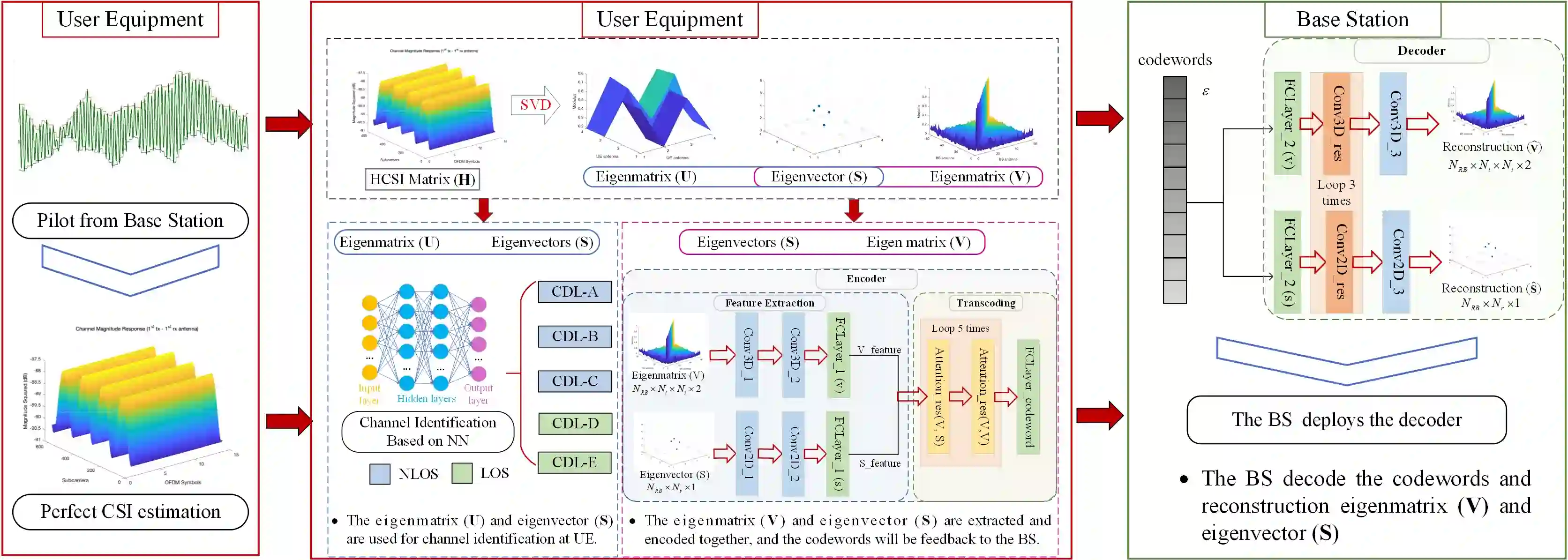 翻译:使用毫米波(mmWave)的智能无线通信和大量多投入多输出(MIMO)的潜在优势在于基地台(BS)的即时频道状态信息(CSI)的可用性。然而,没有频道对等性的存在导致在BS频分区(DFD)系统中难以获得准确的 CSI。许多研究人员探索了基于深层次学习(DL)的有效结构,以解决该问题,并证明了基于DL的解决方案的成功。然而,现有的计划侧重于获取完整的 CSI,而忽视光谱和预编码操作。在本文件中,我们提议使用eigenmatrix和eigenvector反馈神经网络(EMEVNet)建立一个智能频道反馈结构。在关注机制的帮助下,拟议的EMEVNet可被视为一种双通道自动编码器,它能够将egenmatric和igenvictor联合编码成编码。模拟结果显示,与传统的DLCSI反馈方法相比,拟议的EMEVNet方法的性能和稳健度非常低。