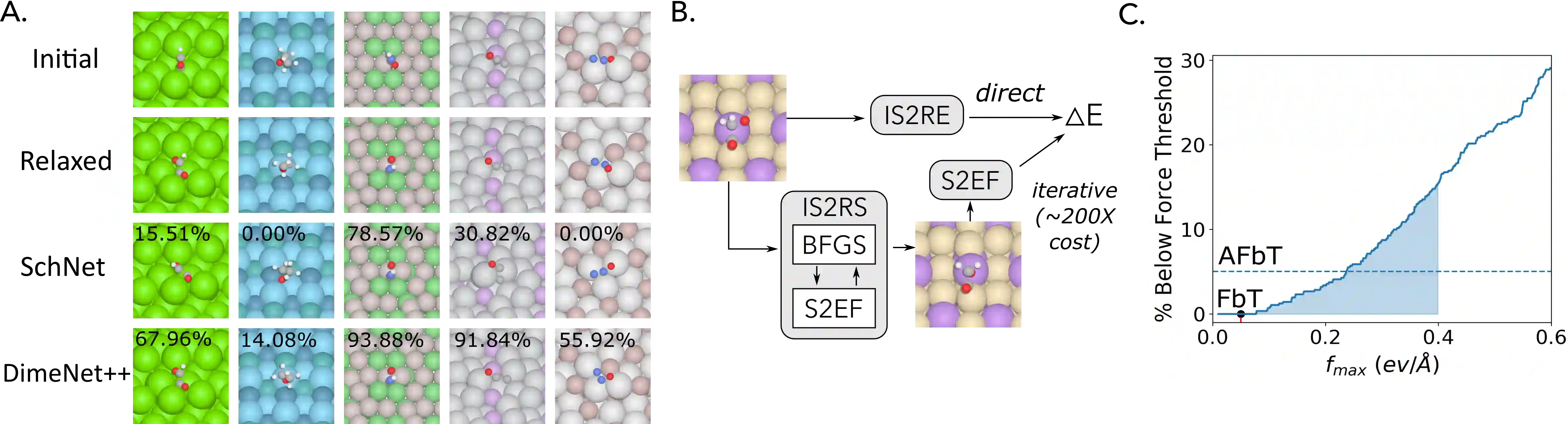 翻译:催化发现和优化是解决许多社会和能源挑战的关键,其中包括太阳能燃料合成、长期能源储存和可再生肥料生产。尽管催化界在计算催化剂发现过程应用机器学习模型方面做出了大量努力,但在建立模型方面仍是一个公开的挑战,这些模型可以覆盖表层和吸附体的元素构成,或许是因为在催化方面数据集比相关领域要小。为了解决这个问题,我们开发了OC20数据集,其中包括1,281,040 Density 功能 Thetory(DFT)放松(~264,890,000个单一点评价),在广泛的材料、表面和粘索贝(硝基、碳和氧化学化学)过程中应用机器模型,我们用随机的扰动结构、短期分子动态动态和电子结构分析来补充这一数据集。 数据集由三个核心任务组成,表明日常催化剂模型的建模,并配有事先确定的火车/鉴定/测试分解(DFT)放松(~264,890,90,000个点的单点评价) 放松(~264,890,000个初步评估) 社区对材料、表面和表面的单点评估模型做出直接比较(Nexorate) 贡献) 贡献。我们将这些数据作为每个模型的模型的建模的模型的模型的模型中,这些模型的建模都提供这些模型的建成了一个可能的模型,这些模型是用于每个模型的建模模的建模的建模的建模的建于每个模型。