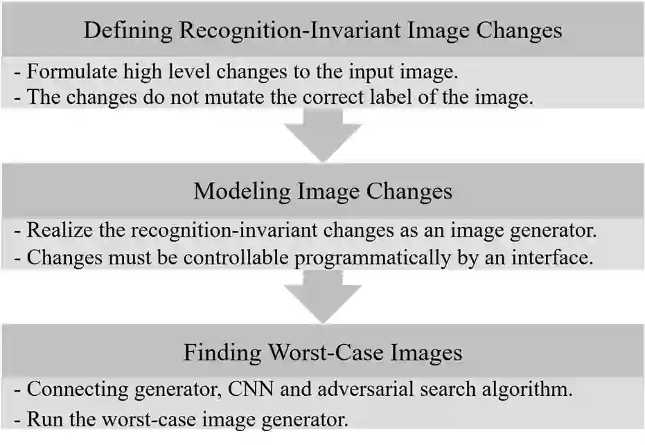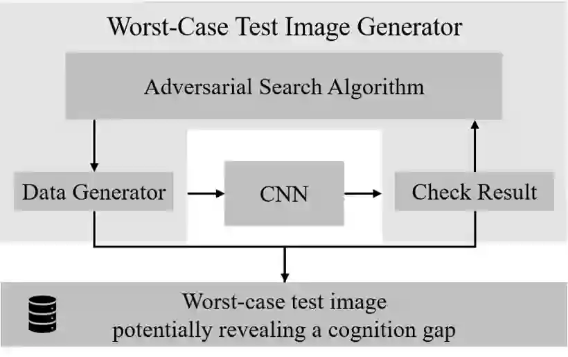 Developing consistently well performing visual recognition applications based on convolutional neural networks, e.g. for autonomous driving, is very challenging. One of the obstacles during the development is the opaqueness of their cognitive behaviour. A considerable amount of literature has been published which describes irrational behaviour of trained CNNs showcasing gaps in their cognition. In this paper, a methodology is presented that creates worstcase images using image augmentation techniques. If the CNN's cognitive performance on such images is weak while the augmentation techniques are supposedly harmless, a potential gap in the cognition has been found. The presented worst-case image generator is using adversarial search approaches to efficiently identify the most challenging image. This is evaluated with the well-known AlexNet CNN using images depicting a typical driving scenario.