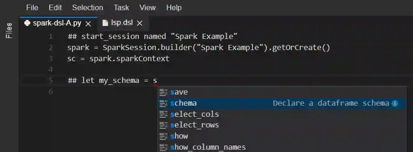 翻译:科学研究的核心是数据分析,这是研究人员和从业人员通常通过编程自己的一套自动化脚本来完成的突出任务。虽然设计数据分析管道的工具和语言并不短缺,但用户花大量精力去学习这类语言/工具的具体细节,而且往往设计项目过于具体,无法在今后的研究中再利用的解决方案。此外,用户需要进一步努力使其代码可缩放,因为平行执行通常比较复杂。我们通过提出一个先进的代码建议工具来解决这些问题,便利数据科学脚本的开发。用户在用于数据框架操作和分析的人类可读域特定语言(DSL)中提出他们的意图。DSL的语句可以在编辑过程中转换成可执行的 Python 代码。为了避免需要学习 DSL,提高用户的友好性,我们的工具需要支持主流 IDEs 和编辑完成代码。此外,DSLS 的语句可以产生可执行的代码(目前我们支持 Pandas 和 PySpark ) 。总的来说,我们试图加快共同数据分析任务的编程,并便利PyS 10级框架的初步处理工具框架的每个阶段。