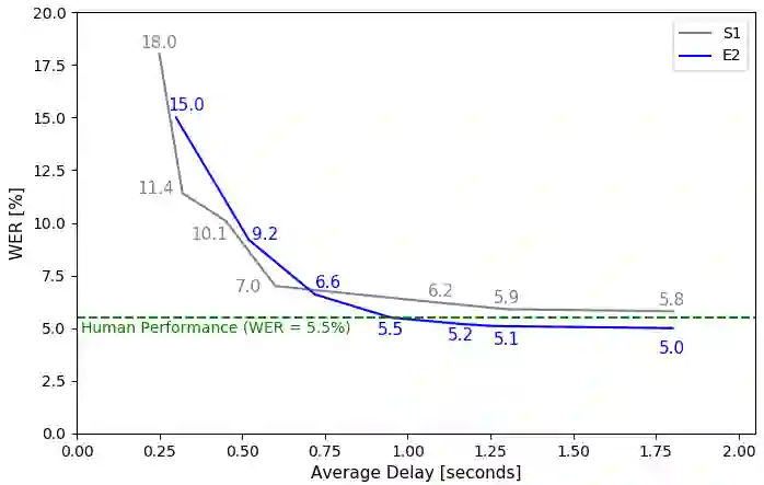 翻译:数十年来,随着研究人员致力于越来越具有挑战性的任务,在承认人类言论方面实现超人性表现一直是一项目标。在1990年代,人们发现,由于犹豫、失常、虚假开场和草率的表达使声学处理复杂化,共同需要严格处理声学、词汇和语言背景,因此两个人之间的谈话演讲比阅读演讲困难得多。早期的统计模型尝试只能达到50%以上的误差率,远远达不到人类的性能(5.5%左右)。神经混合模型和最近基于注意力的编码脱coder模型大大改进了性能,因为现在可以以整体的方式学习这种环境。然而,处理这种背景需要整个发声演示,从而造成不必要的延误,然后才能产生确认结果。在本文中,我们谈到性能和耐久性。我们为能够实现超人性性能的系统(5.0%的WER,超过交换台的谈话基准)提供了结果,只有1秒长的词本,在演讲者演讲后才使用惯性词。系统使用多种基于注意的编码网络,在低小的语音中采用渐进式网络内使用多重的递增度。