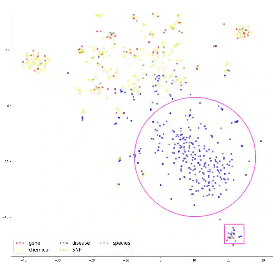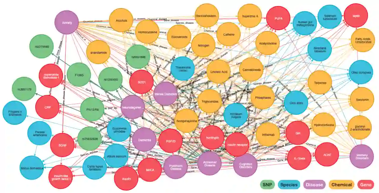 翻译:迄今为止,大多数神经退化性疾病都没有有效的治疗方法,但是,某些食物可能与这些疾病有关,并带来防止或推迟神经退化性发展的机会。我们的目标是利用文献挖掘研究神经退化性疾病与饮食的关系,以建立一个神经退化性疾病知识图。我们收集了4 300份出版物的摘要中与神经退化性疾病和饮食有关的生物医学说明(疾病、化学、基因、物种、SNP和Mutation)。 PubTator是一个由NIH支持的工具,可以从文献中提取生物医学概念。从这些说明中产生了一个知识图。然后,对图表嵌入者进行了“节点算法”培训,以支持潜在的概念组合和类似的概念识别。我们发现了一些可能来自饮食并对神经退化性疾病产生影响的与食物有关的物种和化学品。