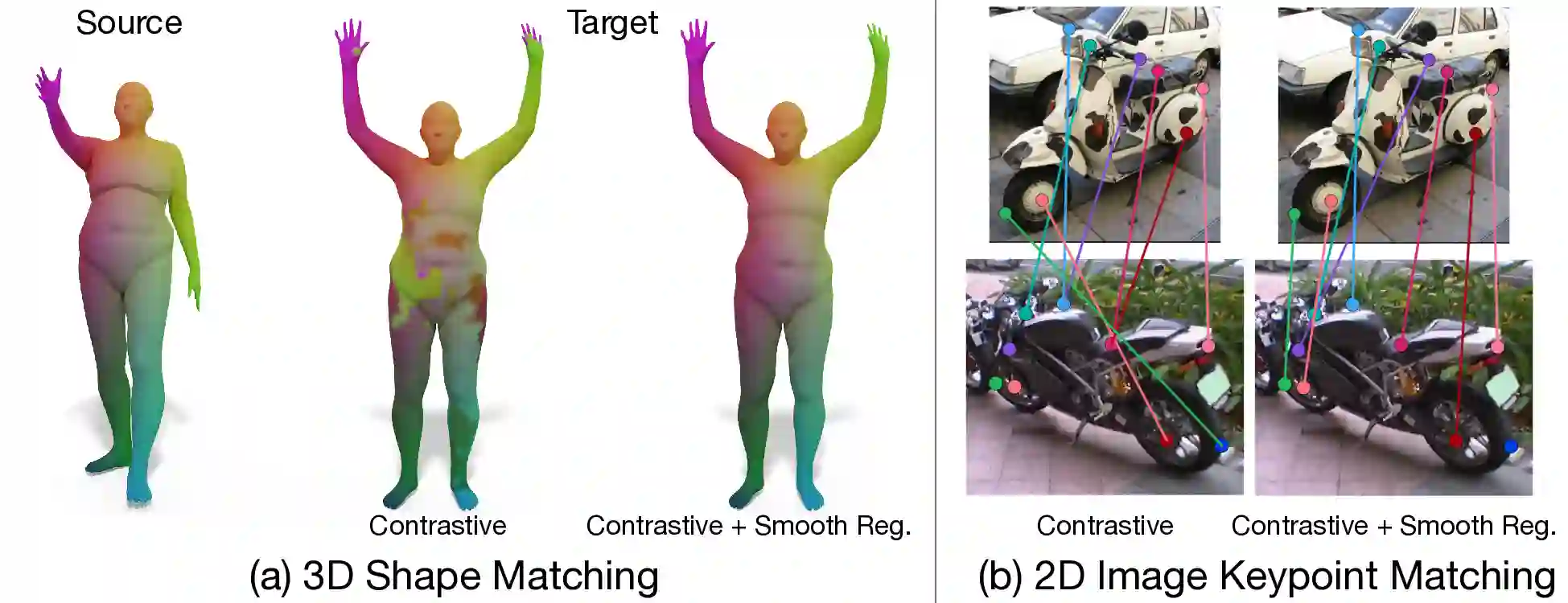 翻译:在这项工作中,我们提出了一个新颖的学习框架,将对比学习的准确性与全球几何方法的一致性结合起来,以便进行强力的非硬性比对。我们首先发现,虽然对比学习可以产生强大的点性特征,但学到的通信通常缺乏顺畅和一致性,因为标准对比损失的纯组合性质。为了克服这一局限性,我们建议用两种类型的平稳规范化来推动对比性学习,将几何信息注入通信学习中。有了这种新颖的组合,由此产生的特征在个别点上具有高度的差别性,同时通过简单的近距离查询产生稳健和一致的对应。我们的框架是通用的,适用于3D和2D两个领域的本地特征学习。我们通过广泛实验,在具有挑战性的匹配基准上展示了我们的方法的优势,包括3D非硬形对称通信和2D图像关键点的匹配。