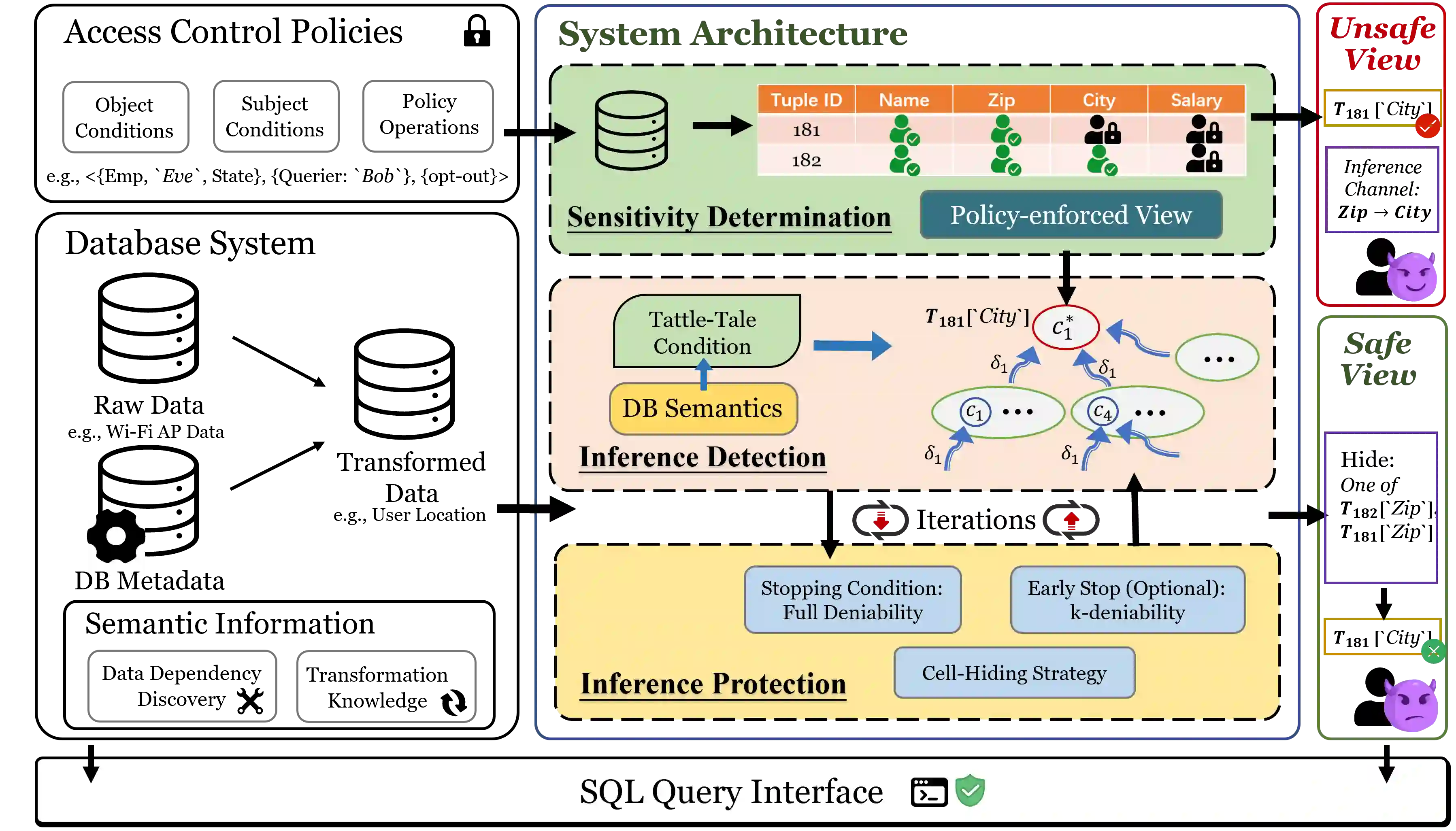 翻译:我们研究在(部分)数据可能敏感时回答询问的问题,而不应将问题透露给querier。简单地将计算限制在数据中非敏感部分,可能通过基于数据依赖性的推论泄漏敏感数据。虽然文献中研究了在查询处理过程中对数据依赖性进行推断控制的问题,但现有解决办法要么发现并拒绝导致泄漏的查询,要么使用仅保护敏感数据准确重建的薄弱安全模型。在本文中,我们采用了基于完全可否认性的更强有力的安全模式,防止从查询答复中推断出关于敏感数据的任何信息。我们确定在何种条件下可以实现完全可否认性,并开发一种有效的算法,在查询处理过程中尽可能隐藏非敏感单元格,以达到完全可忽略性。我们实验性地表明,我们提高敏感数据比例的方法是实用的,规模是提高敏感数据的比例,以及增加数据库的规模。