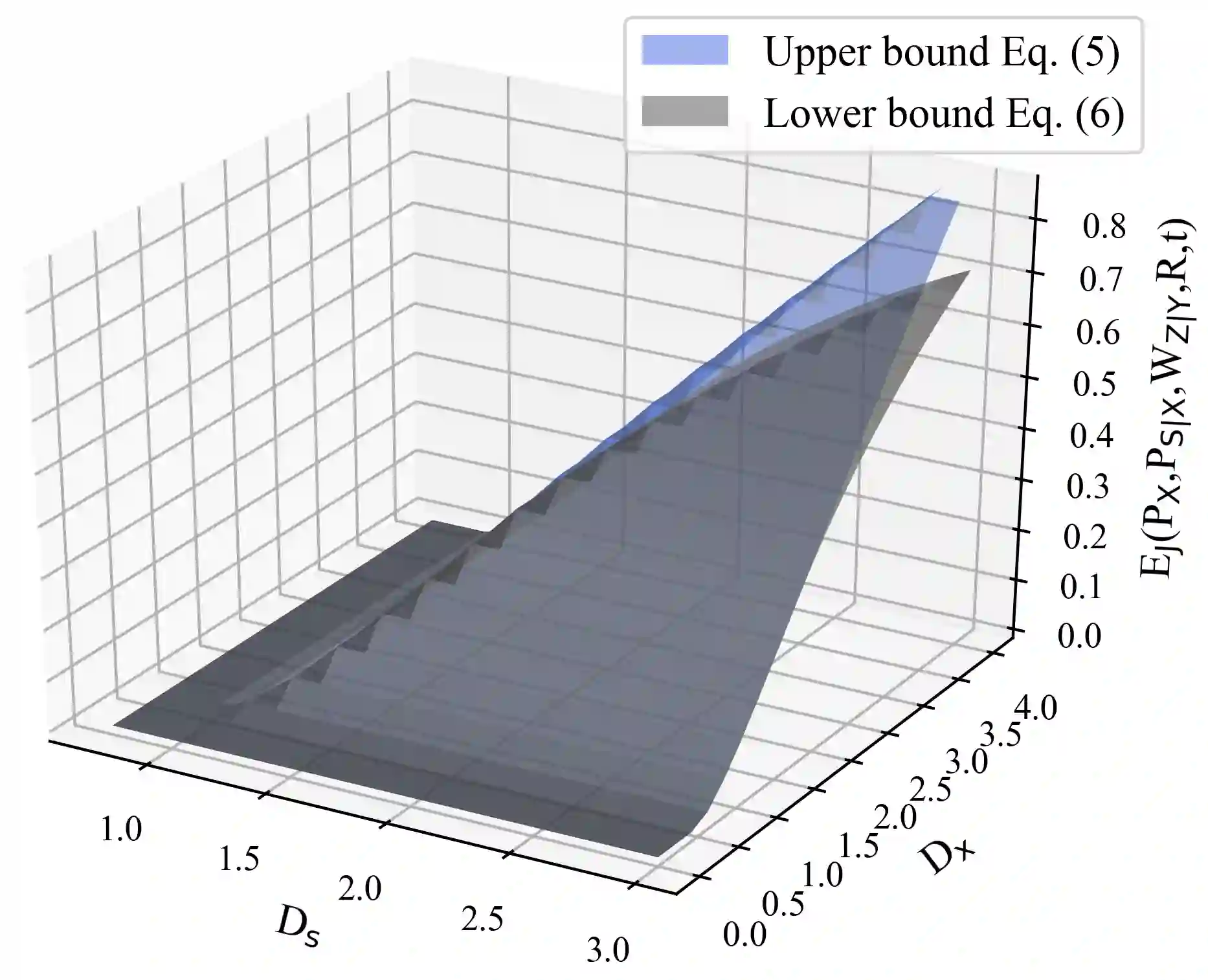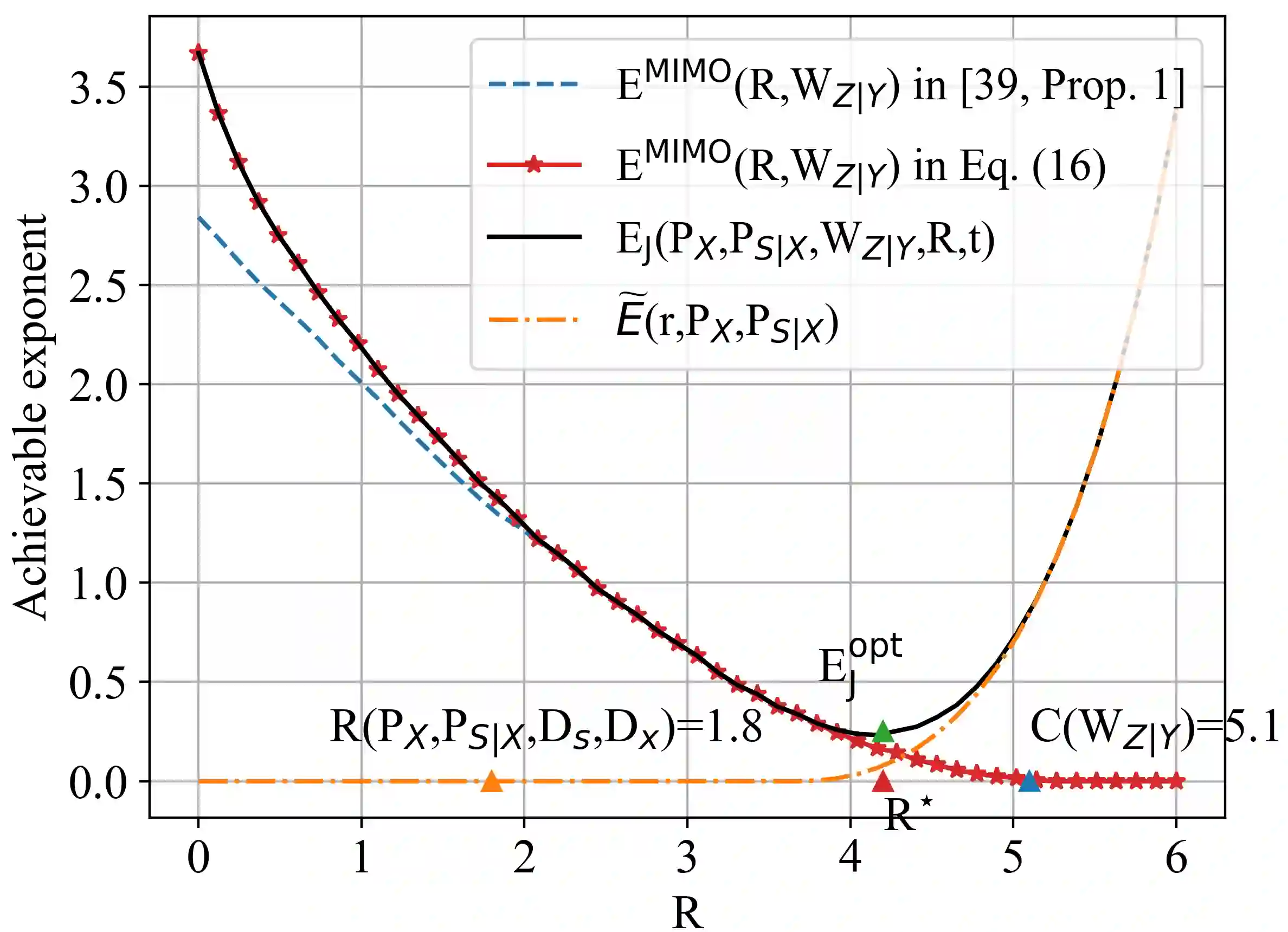 翻译:本文介绍了对语义识别通信系统中联合源道编码(JSCC)超常扭曲指数的分析。通过引入一种不可观测的语义源,我们将Csiszar的经典结果扩展至语义识别通信系统,建立了离散无内存源道对子的上下界限。此外,还得出了离散无内存源道对子超扭曲指数的延伸可实现界限。进一步的分析探讨了区块衰减和天线数如何影响语义软件MIMO系统的引力。我们的结果提供了一些错误衰变功能的理论界限,可用于指导未来与联合源道连接的语义通信。