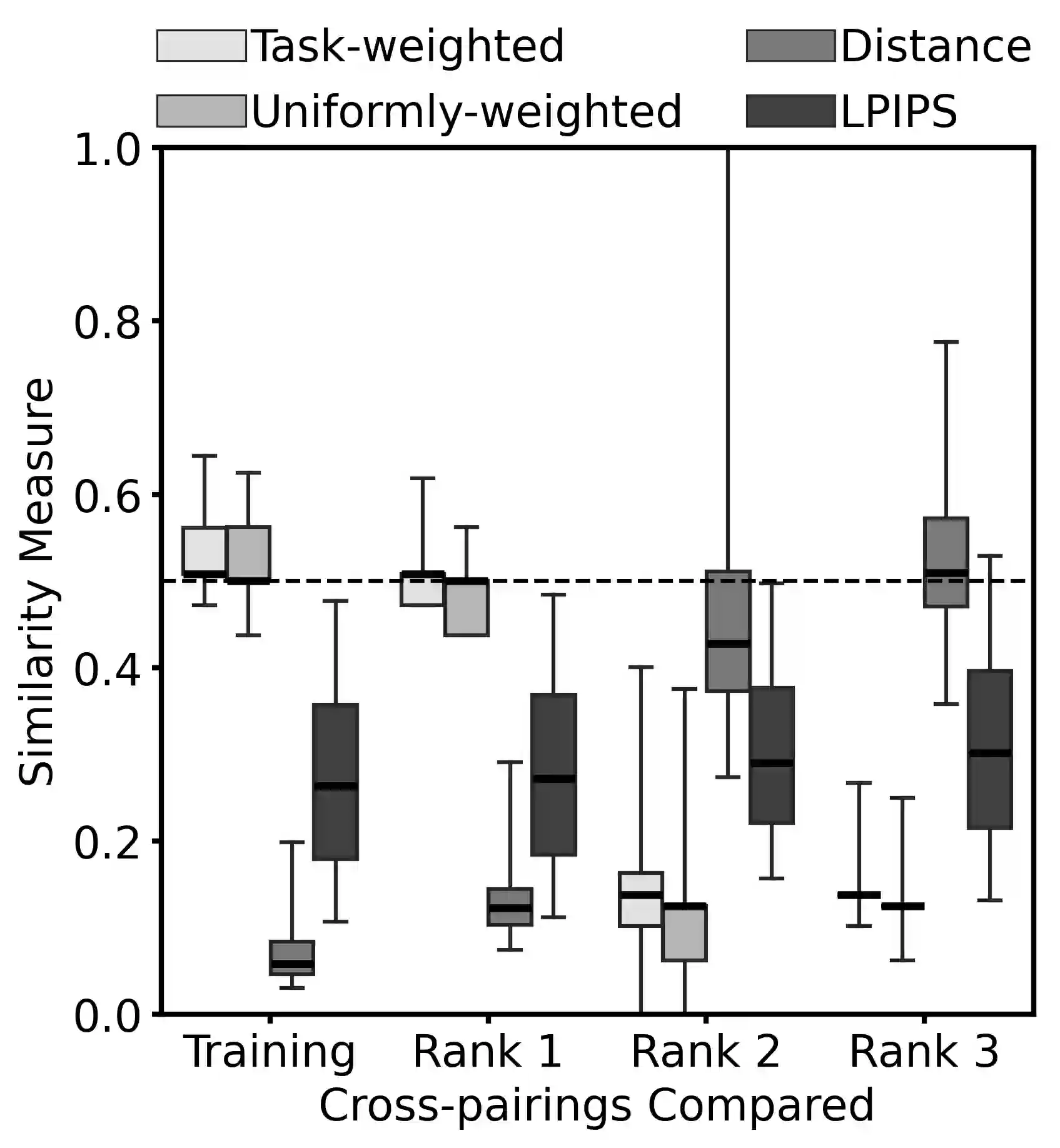 翻译:超分辨率、图像修复、全图像生成、非配对风格迁移以及网络约束图像重建均涉及机器学习图像合成的某个方面,其中实际真值在使用时未知。通常难以对合成图像质量进行定量且权威的评估;然而,在任务关键的生物医学场景中,稳健的评估至关重要。本工作中,所有实际的图像间比较本质上都是相对定性评估,而非绝对差异量化;因此,生成图像质量的实质性评估可通过Tversky指数实现,该指数是评估感知相似性的成熟度量方法。该评估流程经开发后,通过使用真实与模拟的多组图像数据集进行验证。主要结论表明:当任何特征编码选择的主观性与固有缺陷被明确前置时,Tversky方法能产生直观结果,而基于深度特征空间距离汇总的传统方法则无法实现。