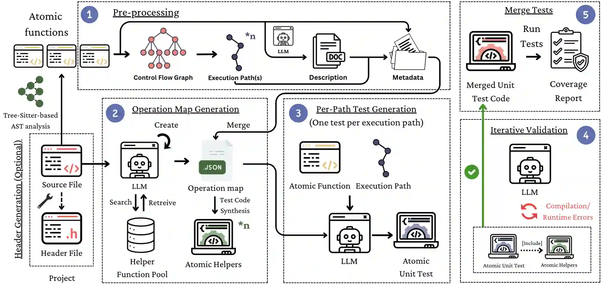 翻译:针对C语言的自动化单元测试生成,由于高层程序意图与指针运算和手动内存管理的严格语法约束之间存在语义鸿沟,仍是一项艰巨挑战。尽管大语言模型展现出强大的生成能力,但直接从意图到代码的合成常受“跳跃至代码”故障模式的影响,即模型在未基于程序结构、约束和语义的情况下过早生成代码。这将导致测试无法编译、函数签名幻觉、分支覆盖率低以及无法正确捕获错误的语义无关断言。我们提出SPARC,一种神经符号化、基于场景的框架,通过四个阶段弥合这一鸿沟:(1) 控制流图分析,(2) 将LLM推理锚定于已验证实用辅助函数的操作映射,(3) 路径导向的测试合成,以及(4) 利用编译器和运行时反馈的迭代自校正验证循环。我们在59个真实世界和算法主题上评估SPARC,其在线覆盖率、分支覆盖率和变异分数上分别比原始提示生成基线高出31.36%、26.01%和20.78%,在复杂主题上达到或超越了符号执行工具KLEE的性能。SPARC通过迭代修复保留了94.3%的测试,并生成具有显著更高开发者评价可读性和可维护性的代码。通过将LLM推理与程序结构对齐,SPARC为遗留C代码库的工业级测试提供了可扩展的路径。