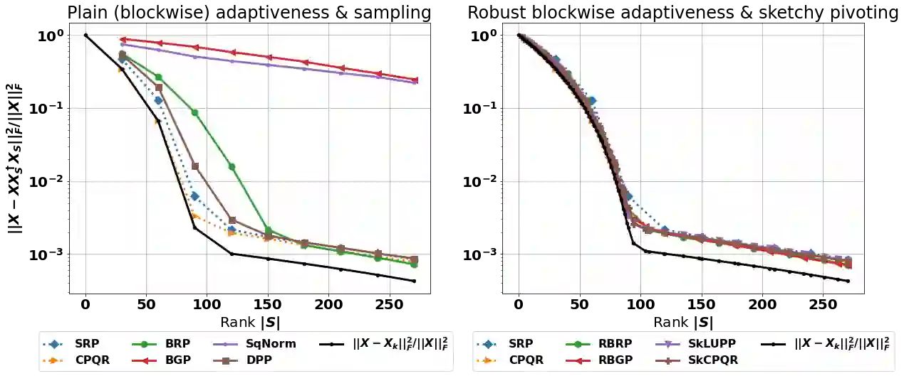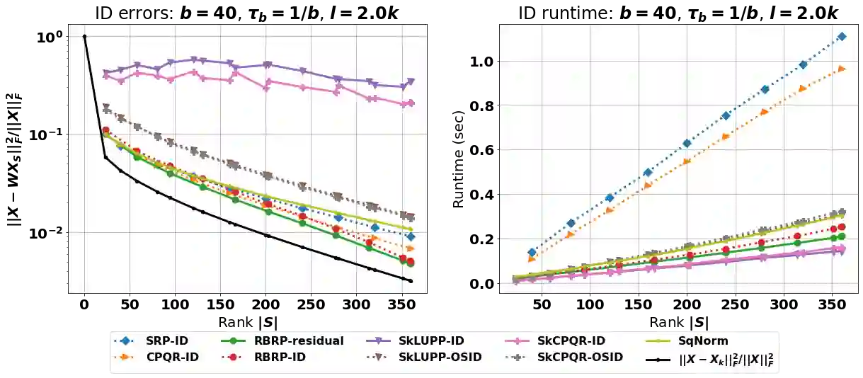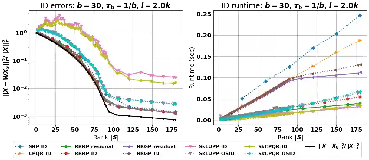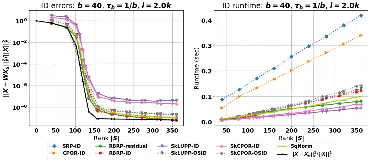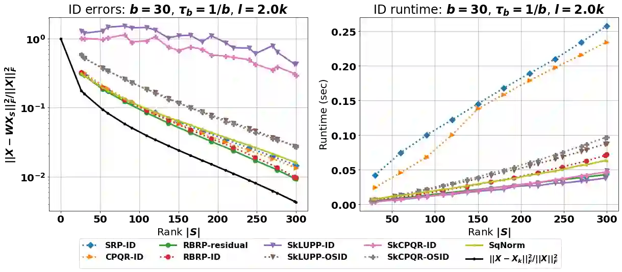 The interpolative decomposition (ID) aims to construct a low-rank approximation formed by a basis consisting of row/column skeletons in the original matrix and a corresponding interpolation matrix. This work explores fast and accurate ID algorithms from five essential perspectives for empirical performance: (a) skeleton complexity that measures the minimum possible ID rank for a given low-rank approximation error, (b) asymptotic complexity in FLOPs, (c) parallelizability of the computational bottleneck as matrix-matrix multiplications, (d) error-revealing property that enables automatic rank detection for given error tolerances without prior knowledge of target ranks, (e) ID-revealing property that ensures efficient construction of the optimal interpolation matrix after selecting the skeletons. While a broad spectrum of algorithms have been developed to optimize parts of the aforementioned perspectives, practical ID algorithms proficient in all perspectives remain absent. To fill in the gap, we introduce robust blockwise random pivoting (RBRP) that is parallelizable, error-revealing, and exact-ID-revealing, with comparable skeleton and asymptotic complexities to the best existing ID algorithms in practice. Through extensive numerical experiments on various synthetic and natural datasets, we empirically demonstrate the appealing performance of RBRP from the five perspectives above, as well as the robustness of RBRP to adversarial inputs.