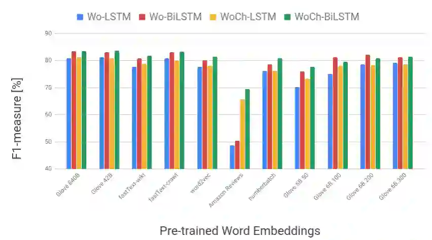翻译:最近,在情绪分析领域,各种模型设计和方法已经蓬勃发展,然而,仍然缺乏对基于侧面情绪分析的广泛和全面的研究(ABSA),我们希望填补这一空白,并提议比较利用各种文字嵌入方法对侧面抽取进行的对比分析,我们特别侧重于基于长期短期内存(LSTM)的建筑,使用不同的预先培训的字嵌入,选择有条件随机字段(CRF)的增强。此外,我们分析了用性格嵌入延长单词传导步骤的性能的影响。SemEval数据集的实验结果显示,不仅双向短期内存(BILSTM)优于常规LSTM,而且单词嵌入覆盖范围及其来源也严重影响了方面检测性能。另外,一个额外的通用报告格式层也不断改进了结果。