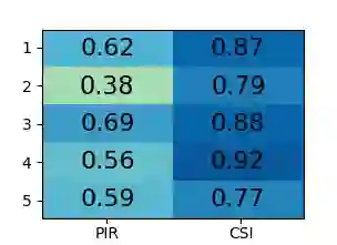 翻译:智能家庭使用传感器的监测行为可以使人们深入了解居民独立能力和长期健康的变化。被动红外运动传感器(PIRs)是标准的,但可能无法准确跟踪整个移动时间,还需要有直观的观察来检测运动,这可以限制工作绩效,确保居民能够看到这些运动。频道国家信息是一种低成本、无侵扰的无线电遥感形式,可以监测运动,但也提供了生成丰富数据的机会。我们开发了一个新型的自我校准运动探测系统,该系统使用在Raspberry Pi 4. 鱼群中收集和处理的CSI数据,该系统利用CSI框架之间的相互关系,我们利用这一框架进行差异分析,利用我们的算法准确测量居民整个移动时间。我们在若干现实世界环境中展示了这一方法的有效性。所进行的实验表明,不同地点不同强度的动作实例可以精确地探测活动开始和结束时间。