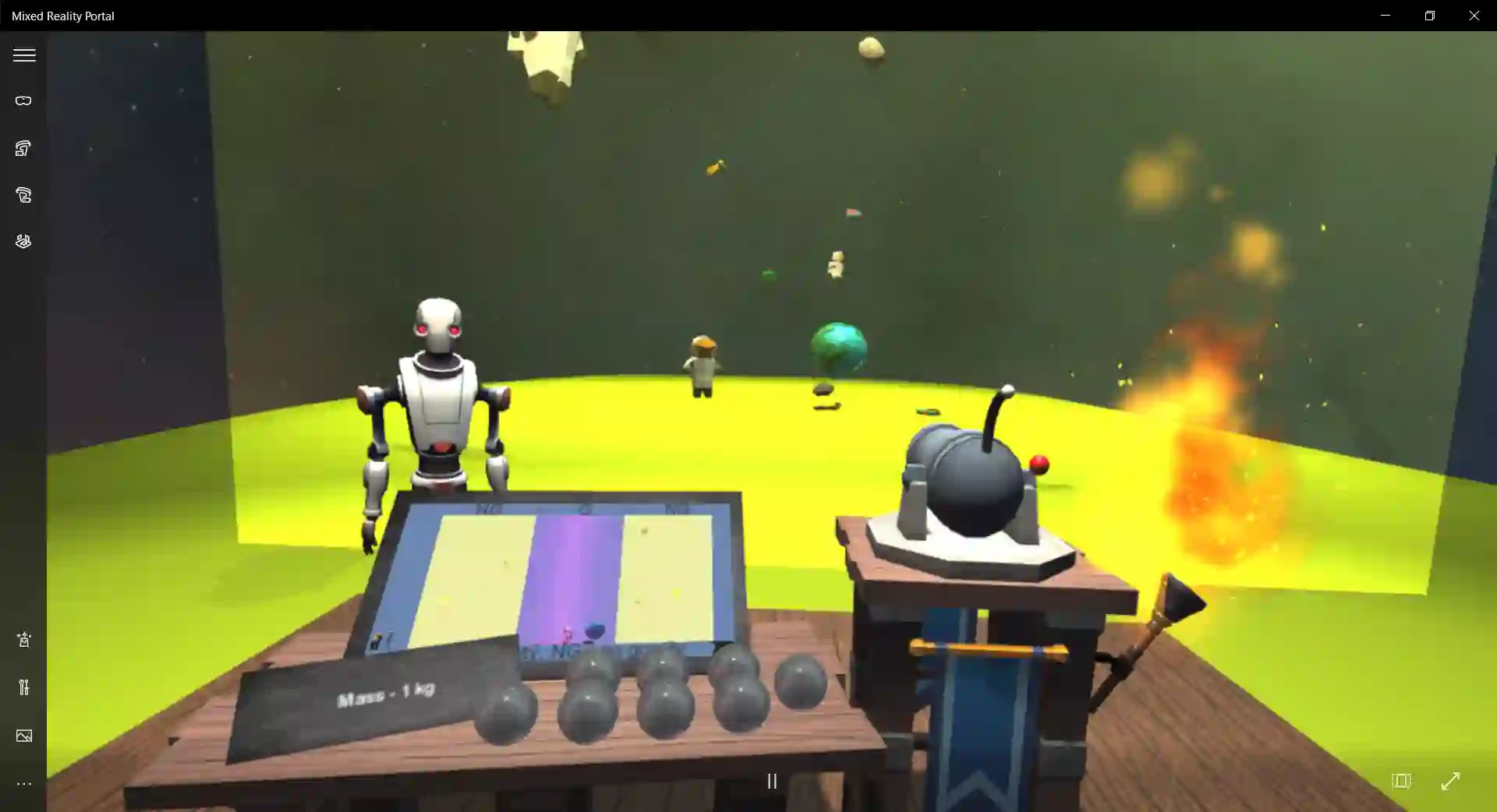 Virtual Reality (VR) has repeatedly proven its effectiveness in student learning. However, despite its benefits, the student equipped with a personal headset remains isolated from the real world while immersed in a virtual space and the classic student-teacher model of learning is difficult to transpose in such a situation. This study aims to bring the teacher back into the learning process when students use a VR headset. We describe the benefits of using a companion for educational purposes, taking as a test case the concept of gravity. We present an experimental setup designed to compare three different teaching contexts: with a physically present real teacher, using a live video of the teacher, and with a VR avatar of the teacher. We designed and evaluated three scenarios to teach the concept of gravity: an introduction to the concept of free fall, a parabolic trajectory workshop and a final exercise combining both approaches. Due to sanitary conditions, only pre-tests are reported. The results showed that the effectiveness of using the VR simulations for learning and the self-confidence level of the students increased as well. The interviews show that the students ranked the teaching modes in this order: VR companion mode, video communication and real teacher.