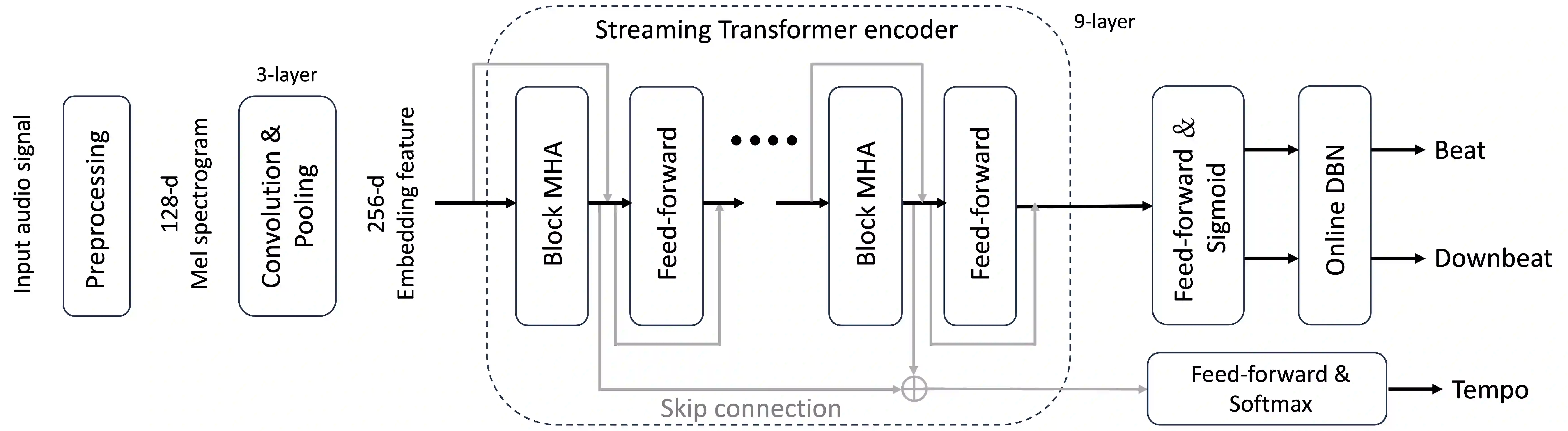 Many deep learning models have achieved dominant performance on the offline beat tracking task. However, online beat tracking, in which only the past and present input features are available, still remains challenging. In this paper, we propose BEAt tracking Streaming Transformer (BEAST), an online joint beat and downbeat tracking system based on the streaming Transformer. To deal with online scenarios, BEAST applies contextual block processing in the Transformer encoder. Moreover, we adopt relative positional encoding in the attention layer of the streaming Transformer encoder to capture relative timing position which is critically important information in music. Carrying out beat and downbeat experiments on benchmark datasets for a low latency scenario with maximum latency under 50 ms, BEAST achieves an F1-measure of 80.04% in beat and 52.73% in downbeat, which is a substantial improvement of about 5 and 13 percentage points over the state-of-the-art online beat and downbeat tracking model.
