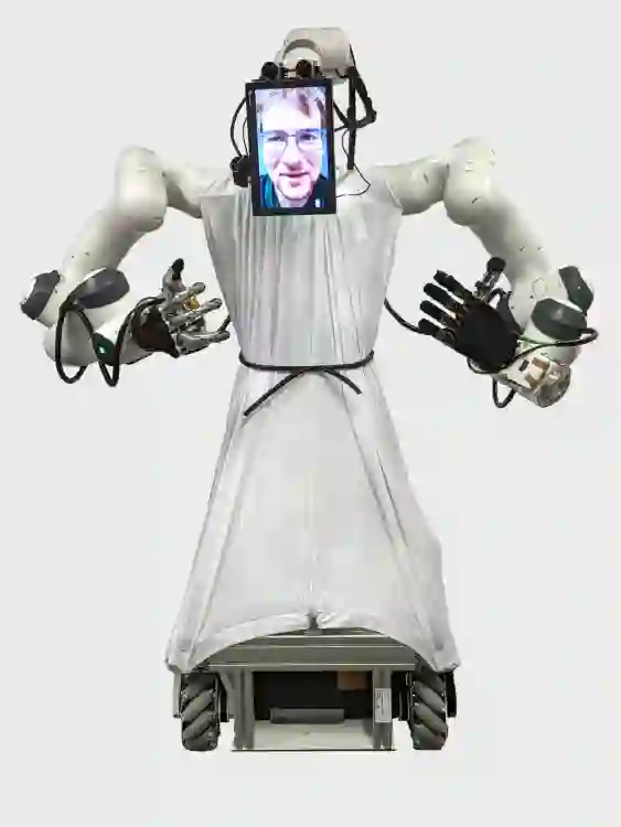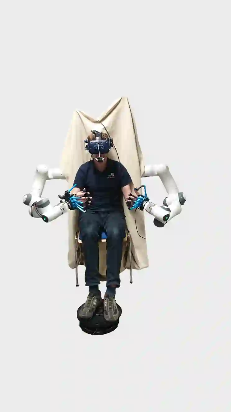 翻译:机器人自动操作员将手臂和手指通过一个基于外骨骼的操作员站驱动,该站提供手腕和每个手指的强力反馈。机器人通灵安装在Holonomic基地,在典型的室内情景中提供移动能力,使用3D舵装置加以控制。最后,机器人装有一台6D移动头,配有立体摄像机,将图像传送到操作员穿戴的VR HMD上。动作拉长是用球形显示隐藏的。头部还带有远程屏幕,显示操作员与面部动动画的合成图像,从而能够与远程人直接互动。我们成功地在用户研究中与未受训练的操作员进行了系统改进,作为长期和更为复杂的综合的任务。我们讨论了可能的经验教训。