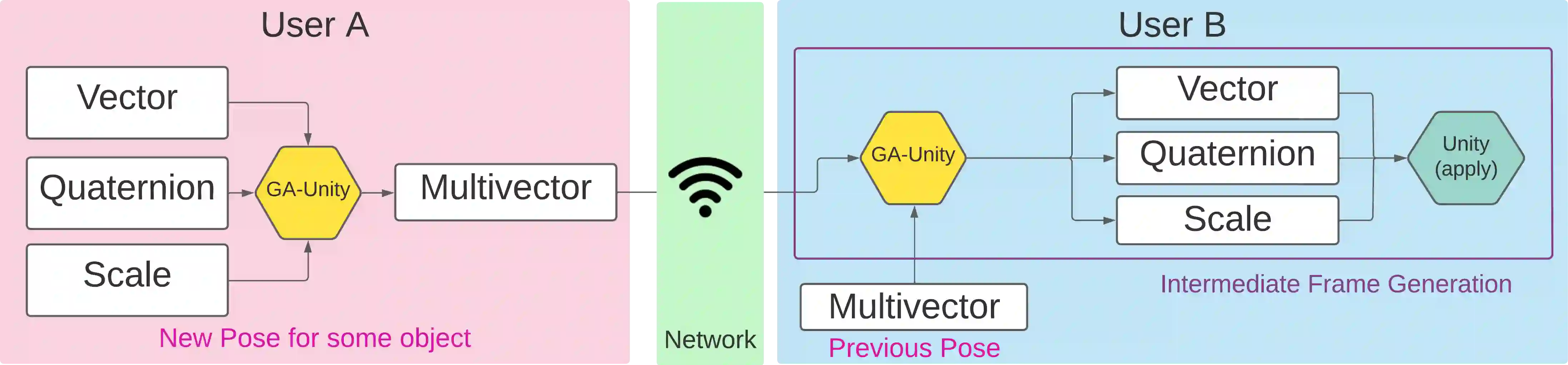 This paper introduces GA-Unity, the first Unity package specifically designed for seamless integration of Geometric Algebra (GA) into collaborative networked applications. Indeed, in such contexts, it has been demonstrated that using multivectors for interpolation between transmitted poses reduces runtime by 16% and bandwidth usage by an average of 50% compared to traditional representation forms (vectors and quaternions); we demonstrate that GA-Unity further enhances runtime performance. Tailored for 3D Conformal Geometric Algebra, GA-Unity also offers an intuitive interface within the Unity game engine, simplifying GA integration for researchers and programmers. By eliminating the need for users to develop GA functionalities from scratch, GA-Unity expedites GA experimentation and implementation processes. Its seamless integration enables easy representation of transformation properties using multivectors, facilitating deformations and interpolations without necessitating modifications to the rendering pipeline. Furthermore, its graphical interface establishes a GA playground for developers within the familiar confines of a modern game engine. In summary, GA-Unity represents a significant advancement in GA accessibility and usability, particularly in collaborative networked environments, empowering innovation and facilitating widespread adoption across various research and programming domains while upholding high-performance standards.
