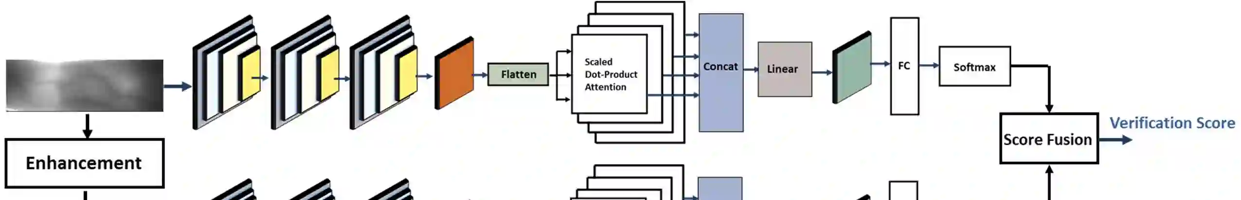 Biometric verification systems are deployed in various security-based access-control applications that require user-friendly and reliable person verification. Among the different biometric characteristics, fingervein biometrics have been extensively studied owing to their reliable verification performance. Furthermore, fingervein patterns reside inside the skin and are not visible outside; therefore, they possess inherent resistance to presentation attacks and degradation due to external factors. In this paper, we introduce a novel fingervein verification technique using a convolutional multihead attention network called VeinAtnNet. The proposed VeinAtnNet is designed to achieve light weight with a smaller number of learnable parameters while extracting discriminant information from both normal and enhanced fingervein images. The proposed VeinAtnNet was trained on the newly constructed fingervein dataset with 300 unique fingervein patterns that were captured in multiple sessions to obtain 92 samples per unique fingervein. Extensive experiments were performed on the newly collected dataset FV-300 and the publicly available FV-USM and FV-PolyU fingervein dataset. The performance of the proposed method was compared with five state-of-the-art fingervein verification systems, indicating the efficacy of the proposed VeinAtnNet.