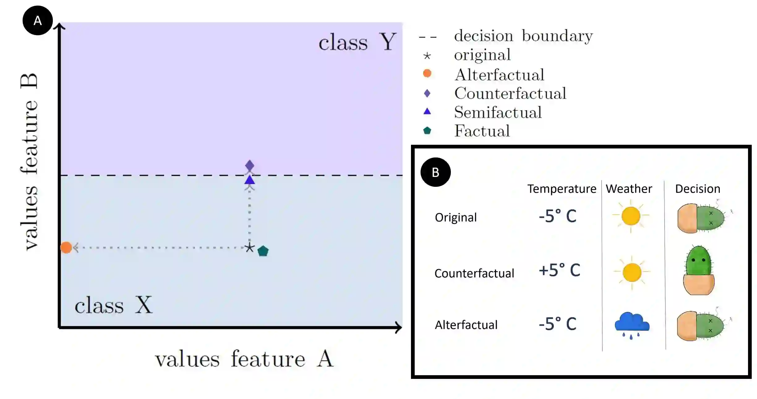 翻译:反事实思考领域的解释机制是解释人造情报(XAI)的一个广泛使用的范例,因为它们遵循人类熟悉的自然推理方法。然而,这一领域的所有共同方法都以交流关于对AI决定特别重要的特征或特征的信息为基础。我们争辩说,为了充分理解一项决定,不仅需要了解相关特征,而且对不相关信息的认识也非常有助于创建AI系统用户的心理模式。因此,我们引入了解释AI系统的新方法。我们称之为Alterfact解释的方法,其基础是显示替代现实,即AI投入的无关特征被改变。通过这样做,用户直接看到输入数据的哪些特征可以任意改变,而不影响AI的决定。我们在广泛的用户研究中评估我们的方法,表明它能够极大地促进参与者对AI的理解。我们表明,改变事实的解释适合于表达对AI理论不同方面的理解,而不是既定的反事实解释方法。