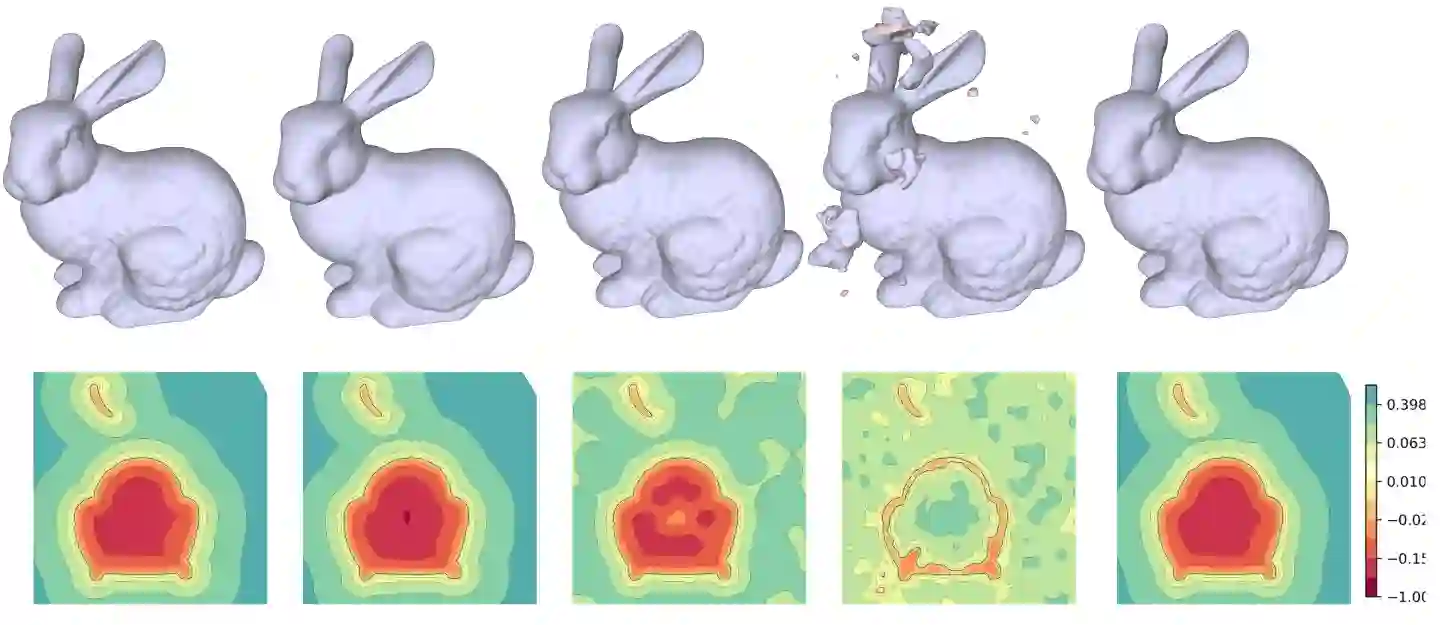 翻译:多层透视器(MLPs)已被成功用于隐含和缩略地代表 3D 形状, 绘制 3D 坐标与对应的签名距离值或占用值之间的对应位置值。 在本文中, 我们提出一个新的位置编码方案, 名为 Spline 定位编码, 在将其传送到 MLPs 之前, 将输入坐标映射到高维空间, 帮助从无组织 3D 点云中恢复 3D 签名的距离域, 并附上精细的几何细节 。 我们验证了我们的方法优于 3D 形状重建任务的其他位置编码方案, 包括输入点云和塑造空间学习 。 我们还演示和评价了我们用于图像重建的方法的有效性 。