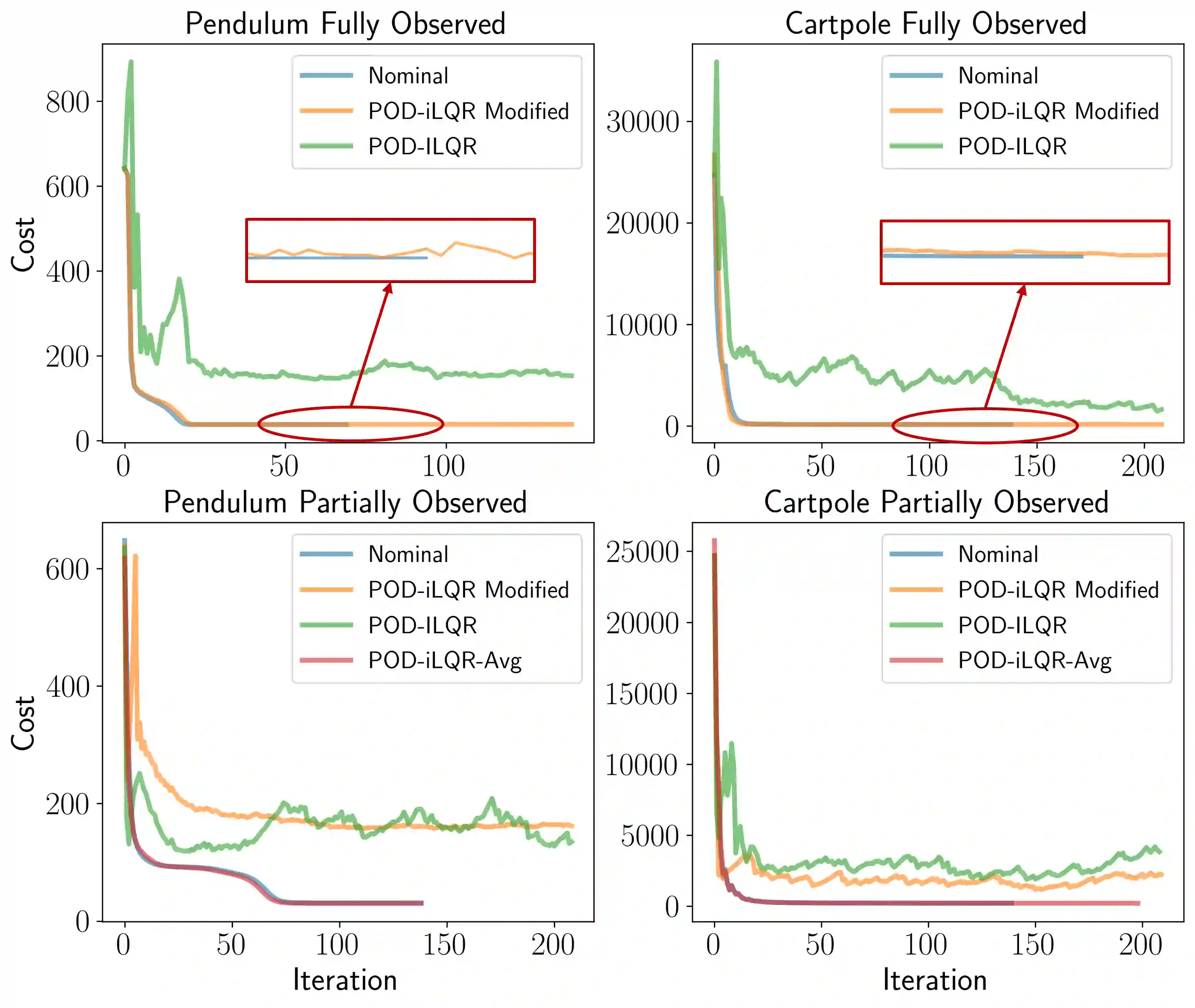 This paper studies the learning-to-control problem under process and sensing uncertainties for dynamical systems. In our previous work, we developed a data-based generalization of the iterative linear quadratic regulator (iLQR) to design closed-loop feedback control for high-dimensional dynamical systems with partial state observation. This method required perfect simulation rollouts which are not realistic in real applications. In this work, we briefly introduce this method and explore its efficacy under process and sensing uncertainties. We prove that in the fully observed case where the system dynamics are corrupted with noise but the measurements are perfect, it still converges to the global minimum. However, in the partially observed case where both process and measurement noise exist in the system, this method converges to a biased "optimum". Thus multiple rollouts need to be averaged to retrieve the true optimum. The analysis is verified in two nonlinear robotic examples simulated in the above cases.