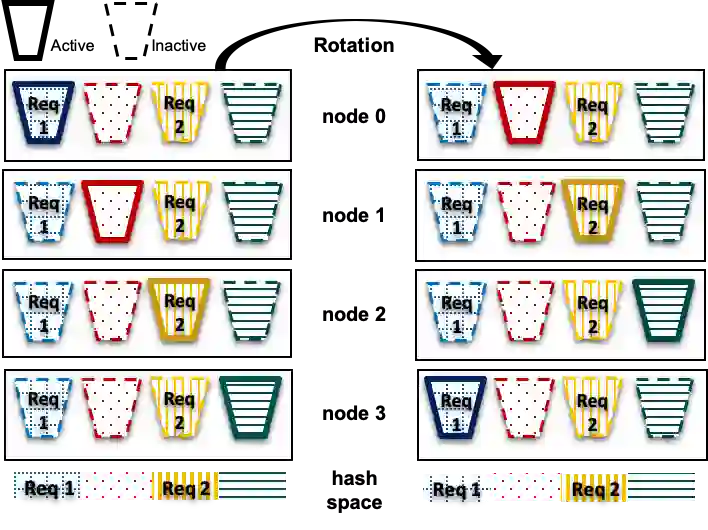 翻译:本文介绍Bir-BFT(Mir-BFT),这是一个强大的Byzantine断层耐受力(BFT)总体广播协议,旨在最大限度地扩大广域网络(WANs)的输送量,针对分散网络的部署,例如允许和允许获取的校准链链系统。Mir-BFT是第一个BFT协议,允许多个领导人独立地(即平行领导人)提出批次请求,从而避免恶意(Byzantine)客户要求重复袭击,办法是将分散式请求的散装仓位分配给领导人。由于这一机制消除了单一领导带带宽的瓶颈特征,并暴露了与认证客户(即使是在广域网上)相关的计算瓶颈。Mir-BFT(即平行领导人)协议允许多个领导人独立地提出批次请求(即平行领导人),从而避免恶意(Byzant)客户要求重复袭击,办法是将分散式请求的仓储空间分配给领导人。由于这一机制消除了单一领导带带带宽的带宽带宽的瓶颈,并暴露了与认证客户相关的计算器,因此,我们的协议进一步推进了分级。我们的协议显示MirB的进度需要。