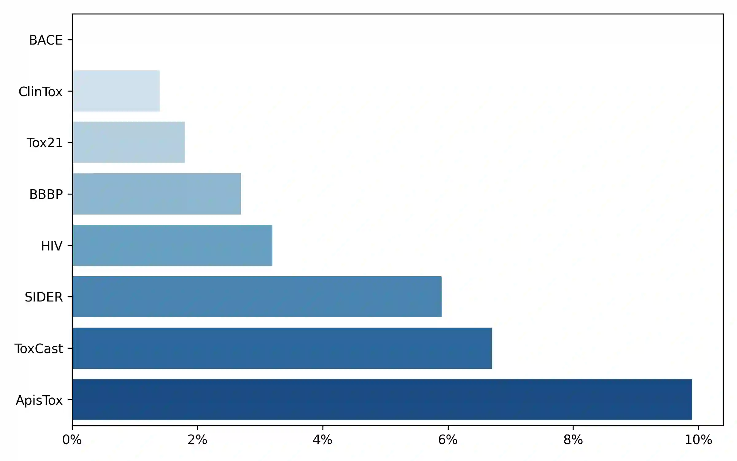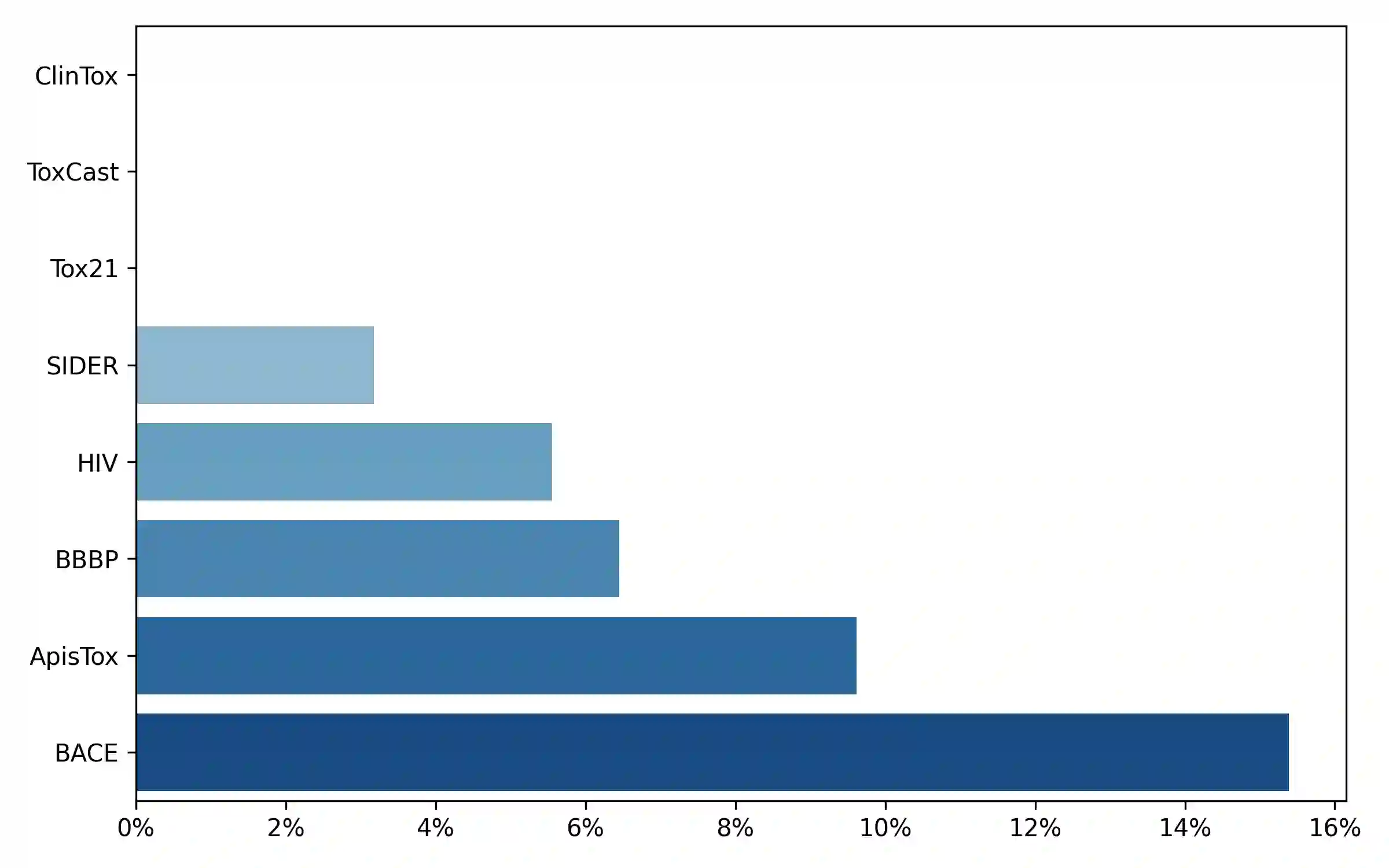 翻译:小分子在生物医学、环境和农化领域发挥着关键作用,每个领域都有独特的理化要求和成功标准。尽管生物医学研究受益于广泛的数据集和既定基准,但农化数据仍然稀缺,特别是在物种特异性毒性方面。本研究聚焦于ApisTox——目前最全面的实验验证化学物质对生态关键传粉者蜜蜂(Apis mellifera)毒性的数据集。我们采用多种机器学习方法评估ApisTox,包括分子指纹、图核、图神经网络以及预训练模型。与MoleculeNet基准中的医药数据集对比分析表明,ApisTox代表了独特的化学空间。在非医药数据集(如ApisTox)上的性能下降,揭示了当前仅基于生物医学数据训练的最先进算法泛化能力有限。我们的研究强调需要更多样化的数据集,以及针对农化领域的定向模型开发。