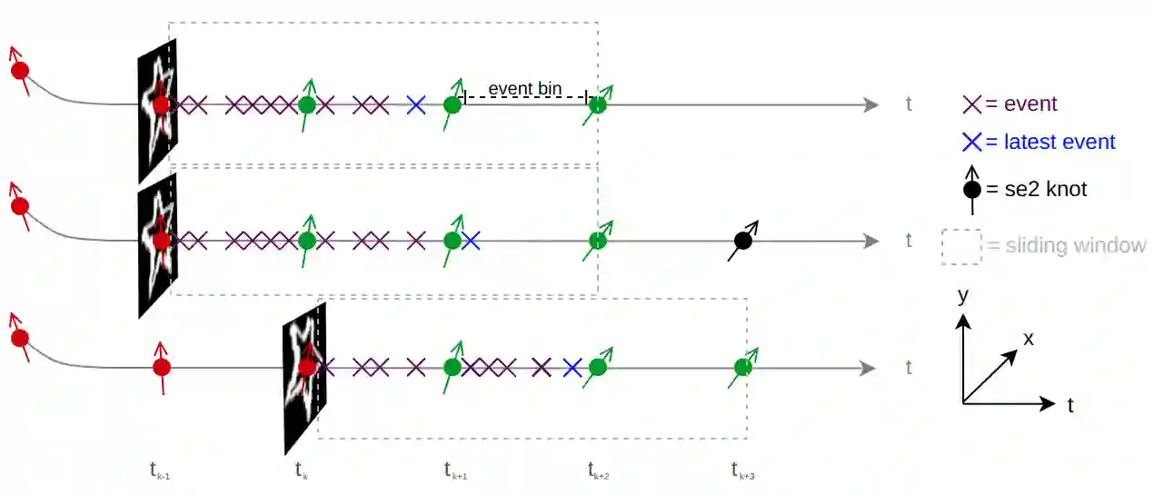 翻译:我们提出了在事件相机中连续时间跟踪特征的新方法。 为此, 我们根据空间时的估计轨迹对事件进行匹配, 这样图像平面上的投影将产生最大亮度的事件补丁图像。 轨迹由美元=th} 命令B- spline 参数化, 连续为$( n-2)\\\\\\\\\th} 衍生物。 与先前的工作相比, 我们以滑动窗口的方式优化曲线参数。 在公共数据集中, 我们实验性地确认, 拟议的滑动窗口 B- spline 优化导致比以往工作更长、 更准确的功能轨迹 。