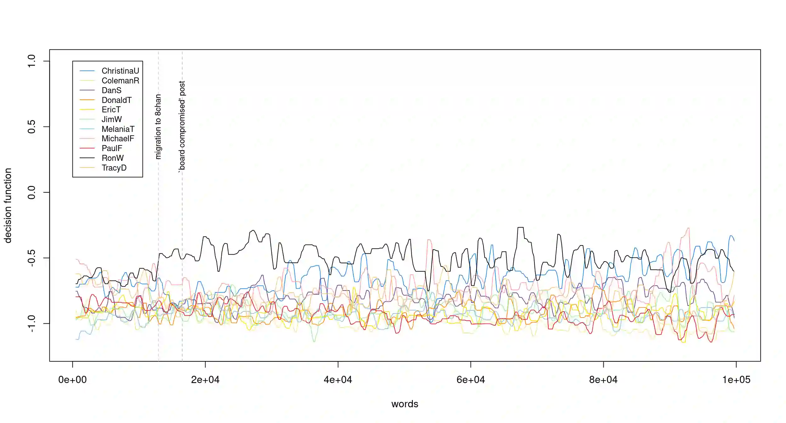翻译:以假名“ Q” 签名的一系列社交媒体文章开始了一个名为“ QAnon” 的运动,它导致一些最激进的支持者采取暴力和非法行动。为了识别Q背后的人,我们评估Q所写文本的语言性质与新闻调查提供的嫌疑人名单所写文本之间的巧合。为了识别这些文章的作者,必须解决严峻的挑战。“ Q drops” 是非常简短的文本, 本身就是一种文学风格, 具有非常特殊的特点。 这些文本可能是由不同的作者写的, 而这些作者的其他著作往往很难找到。 在对Q所写文本进行在线族裔学之后,为了收集这13个潜在作者所写的足够材料,我们用受监督的机器学习来为这些文章中的每一个人建立文体谱特征。 然后我们对Q的著作进行滚动分析,看看其中的任何语言特征是否与所谓的“ Qdrops” 部分或全部相匹配。我们的结论是,两个不同的个人,Paul F. 和Ron W.</s>