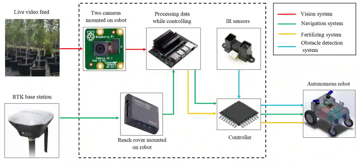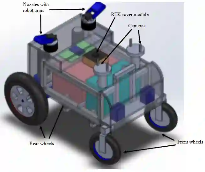 The agriculture sector requires a lot of labor and resources. Hence, farmers are constantly being pressed for technology and automation to be cost-effective. In this context, autonomous robots can play a very important role in carrying out agricultural tasks such as spraying, sowing, inspection, and even harvesting. This paper presents one such autonomous robot that is able to identify plants and spray agro-chemicals precisely. The robot uses machine vision technologies to find plants and RTK-GPS technology to navigate the robot along a predetermined path. The experiments were conducted in a field of potted plants in which successful results have been obtained.