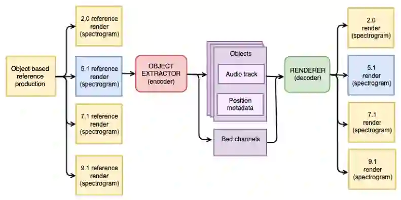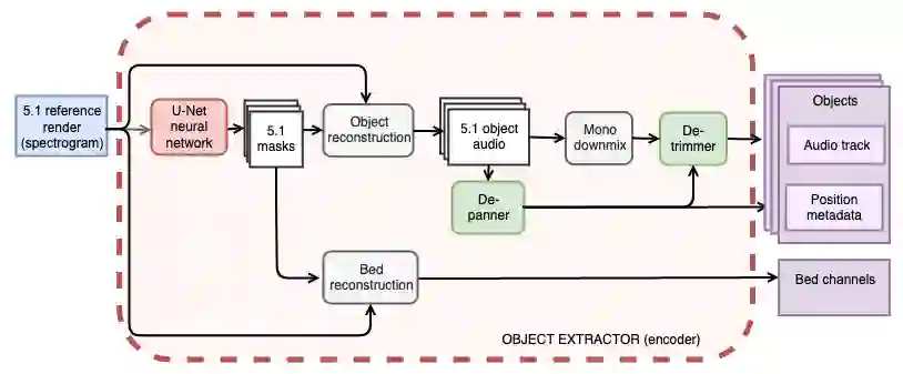 翻译:目前创建和部署隐性音频内容的范式是以音频物体为基础,由音频音轨和位置元数据组成。将基于物体的制作变成多通道组合是直截了当的,反向过程则涉及声源分离和估计提取源的空间轨迹。此外,电影基于物体的制作往往由数十个同步音频物体组成,这给音频物体的提取带来了可缩放性挑战。在这里,我们建议对从多通道中学习的来自基于物体的制作,而不是直接从音频物体本身中学习的物体提取采用新的深层次学习方法。这一方法可以解决对物体可缩放性的挑战,也提供了以受监督或不受监督的方式制定问题的可能性。据我们所知,以前没有其它作品处理过这个问题,我们首先界定任务,提出评估方法,然后讨论在何种情况下我们的方法比拟议基线更符合。