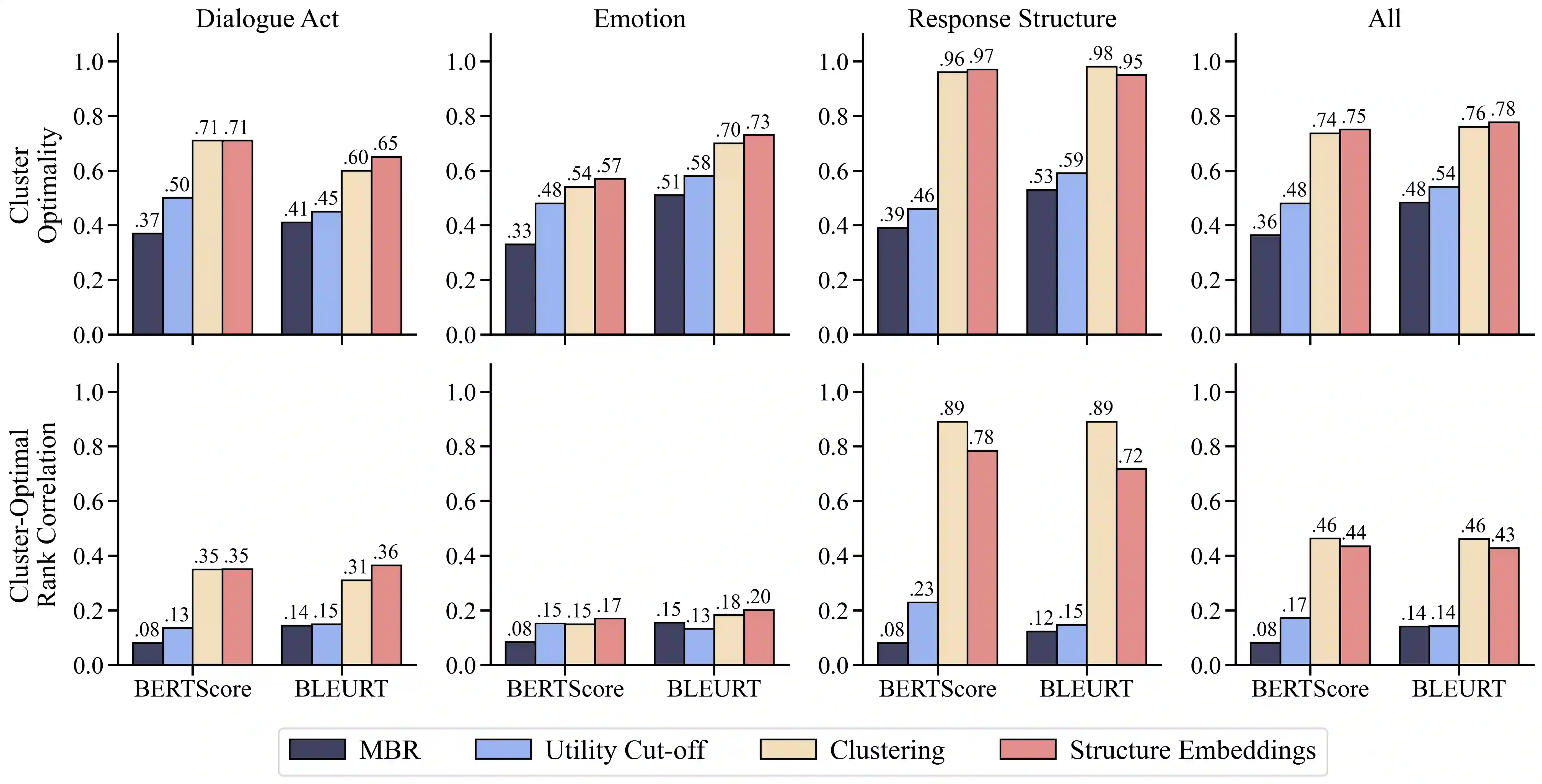 翻译:最小贝叶斯风险(MBR)解码作为一种替代传统生成策略的方法,近来重新受到关注。尽管MBR在机器翻译领域已被证明有效——该领域语言模型输出空间的变异性天然受限,但在对话或指令跟随等更开放的任务中可能面临挑战。我们假设在此类场景下,使用基于标准相似性的效用函数进行MBR解码,可能导致选择那些虽能广泛代表模型分布、但对于共享潜在底层结构的特定生成分组而言并非最优的响应。本研究针对效用函数提出了三种轻量化改进方案,旨在增强MBR对输出空间结构变异性的敏感性。为验证假设,我们构建了一个涵盖三种典型潜在结构类型的数据集:对话行为、情感及响应结构(如单句、段落或列表)。进一步提出两个评估MBR结构最优性的指标。分析表明,常见的基于相似性的效用函数在这些指标上表现不足。相比之下,我们提出的改进方案显著提升了结构最优性。最后,我们在真实世界指令跟随基准测试(AlpacaEval和MT-Bench)上评估了所提方法,结果显示增强结构敏感性可使生成质量在胜率指标上提升高达13.7个百分点。