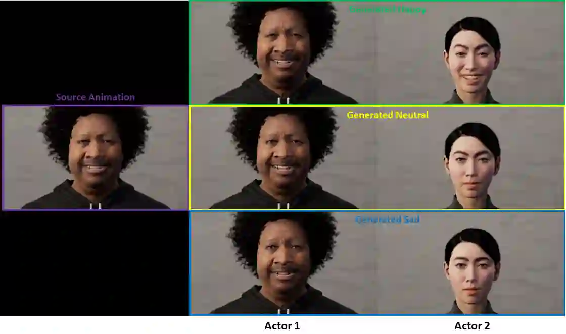 The ability to accurately capture and express emotions is a critical aspect of creating believable characters in video games and other forms of entertainment. Traditionally, this animation has been achieved with artistic effort or performance capture, both requiring costs in time and labor. More recently, audio-driven models have seen success, however, these often lack expressiveness in areas not correlated to the audio signal. In this paper, we present a novel approach to facial animation by taking existing animations and allowing for the modification of style characteristics. Specifically, we explore the use of a StarGAN to enable the conversion of 3D facial animations into different emotions and person-specific styles. We are able to maintain the lip-sync of the animations with this method thanks to the use of a novel viseme-preserving loss.