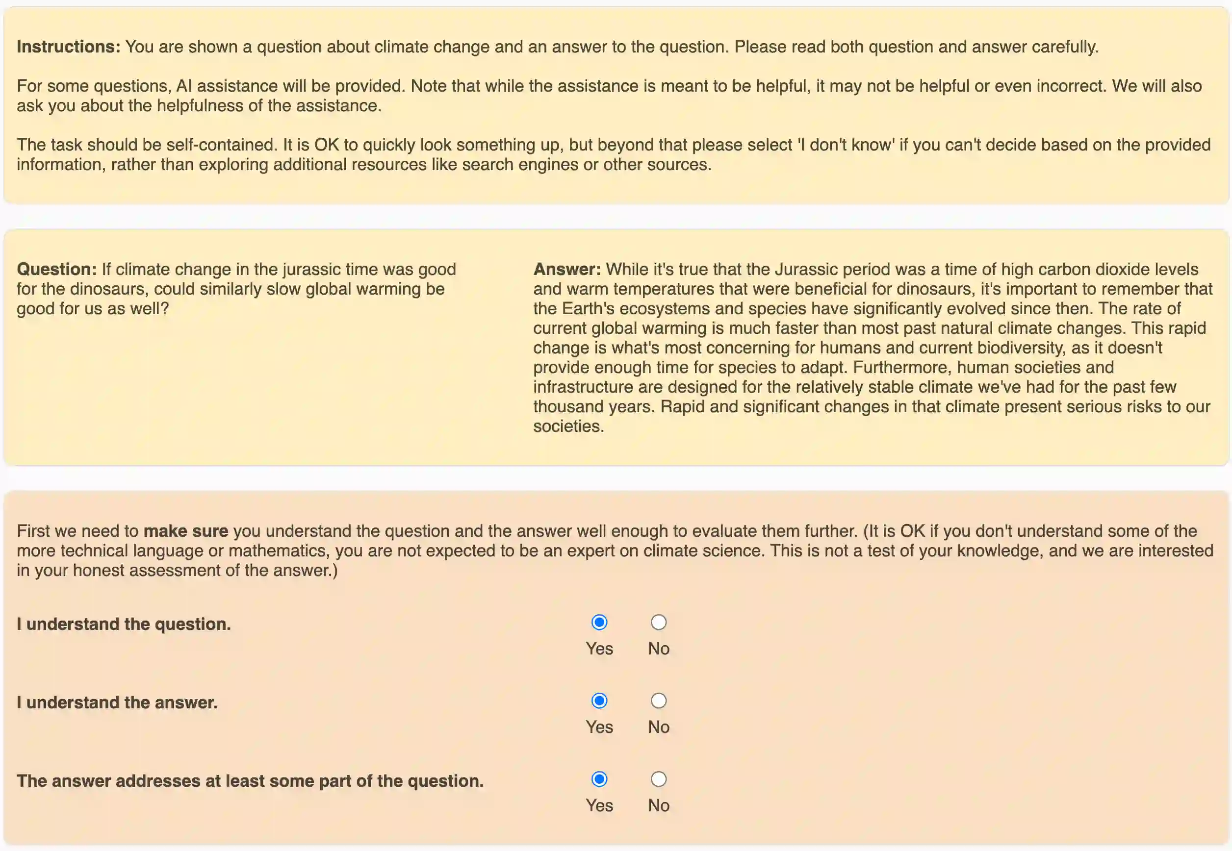 Understanding how climate change affects us and learning about available solutions are key steps toward empowering individuals and communities to mitigate and adapt to it. As Large Language Models (LLMs) rise in popularity, it is necessary to assess their capability in this domain. In this study, we present a comprehensive evaluation framework, grounded in science communication principles, to analyze LLM responses to climate change topics. Our framework emphasizes both the presentational and epistemological adequacy of answers, offering a fine-grained analysis of LLM generations. Spanning 8 dimensions, our framework discerns up to 30 distinct issues in model outputs. The task is a real-world example of a growing number of challenging problems where AI can complement and lift human performance. We introduce a novel and practical protocol for scalable oversight that uses AI Assistance and relies on raters with relevant educational backgrounds. We evaluate several recent LLMs and conduct a comprehensive analysis of the results, shedding light on both the potential and the limitations of LLMs in the realm of climate communication.