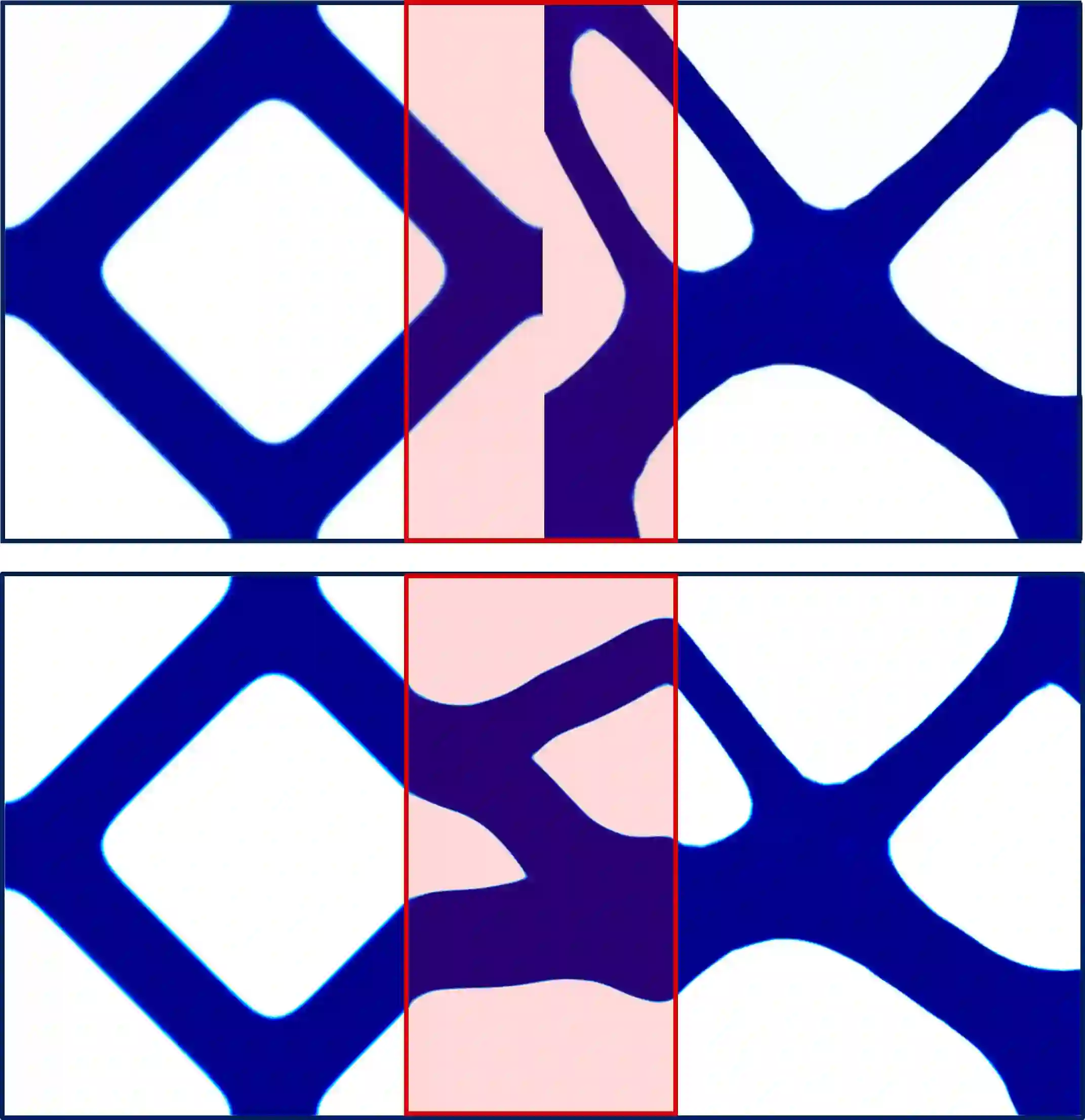 翻译:我们为设计不同衬垫材料之间的连接区域提供了一种新的算法。 我们在一个狭小的变形区域解决了斯托克斯型的地形优化问题,以便顺利连接两个不同的单元细胞。 拟议的程序证明是有效的,提供了材料的局部重新设计,导致对原层特征的机械行为进行非常温和的修改。 算法的坚固性从最终布局对不同参数的敏感性的角度来评估。 卡尔提斯和非卡提斯变形区域的情况都得到了成功调查。
