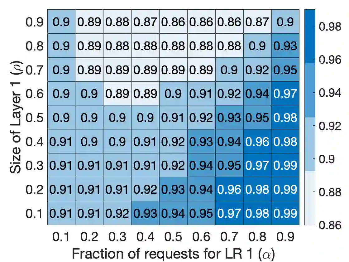 翻译:当今云或边缘计算系统处理或所需海量数据的有效管理仍是一项根本性挑战。本文聚焦于数据对象可采用分层表示存储的应用程序缓存管理。在此类表示中,每个新增数据层都会提升对象版本的"质量",但需付出内存空间的增量成本。这种分层方法在多种场景中被证明具有优势,包括可缩放地图的交付、视频编码、未来虚拟现实游戏,以及通过新增数据层提升推理准确度的分层神经网络模型。在用户或设备需要数据对象不同版本的系统环境中,分层表示为缓存策略提供了提升命中率的灵活性。本文探究了多种传统缓存策略(如Belady、LRU和LFU)在分层与非分层配置下的性能表现。为此,我们为分层LRU(LLRU)建立了渐近精确的分析模型,并研究层数、不同对象与层级的流行度、以及分层表示存储开销等因素对LLRU性能的影响。例如,我们证明对于LLRU而言,更多层级并非总是有益的,其性能实际上以微妙的方式取决于各层级的流行度与规模分布特征。
