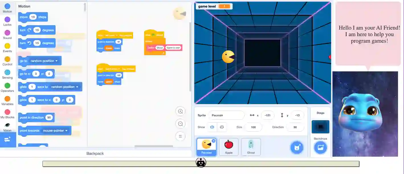 What role can AI play in supporting and constraining creative coding by families? To investigate these questions, we built a Wizard of Oz platform to help families engage in creative coding in partnership with a researcher-operated AI Friend. We designed a 3 week series of programming activities with ten children, 7 to 12 years old, and nine parents. Using a creative self efficacy lens, we observe that families found it easier to generate game ideas when prompted with questions by AI Friend; parents played a unique role in guiding children in more complex programming tasks when the AI Friend failed to help, and children were more encouraged to write code for novel ideas using the AI friend help. These findings suggest that AI supported platforms should highlight unique family AI interactions focused on children's agency and creative self-efficacy.
