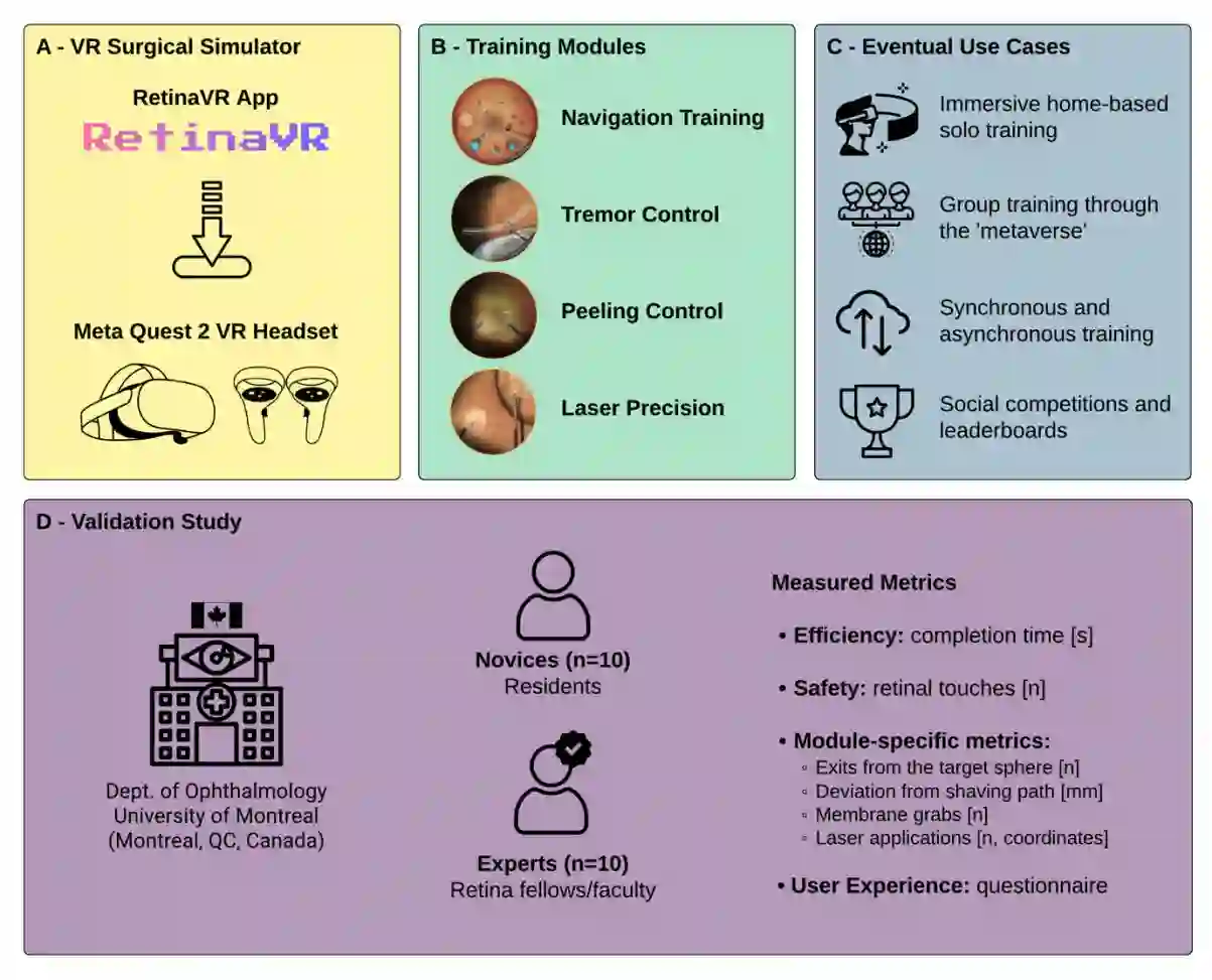 We developed and validated RetinaVR, an affordable and immersive virtual reality simulator for vitreoretinal surgery training, using the Meta Quest 2 VR headset. We focused on four core fundamental skills: core vitrectomy, peripheral shaving, membrane peeling, and endolaser application. The validation study involved 10 novice ophthalmology residents and 10 expert vitreoretinal surgeons. We demonstrated construct validity, as shown by the varying user performance in a way that correlates with experimental runs, age, sex, and expertise. RetinaVR shows promise as a portable and affordable simulator, with potential to democratize surgical simulation access, especially in developing countries.