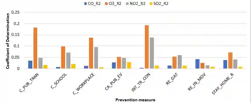 翻译:在这项工作中,我们调查空气质量排放的短期变化,这些变化归因于在不同城市实施的预防措施,以减缓COVID-19的扩散,特别是我们强调对特定污染物气体的浓度影响,如一氧化碳(CO)、臭氧(O3)、二氧化碳(NO2)和二氧化硫(SO2),对封闭空气质量的影响的评估集中在四个欧洲城市(雅典、格拉德萨克斯、洛兹和罗马),关于污染物因素的现有数据是通过全球卫星观测获得的,采用何种程度的预防措施使用牛津COVID-19政府反应追踪器,分析第二部分使用了各种机器学习工具,用于估计每种污染物的浓度,提前两天,结果显示,相应措施与污染物因素之间存在微弱到中度的相互关系,有可能建立模型,用以预测日常人类活动中污染物气体的行为。