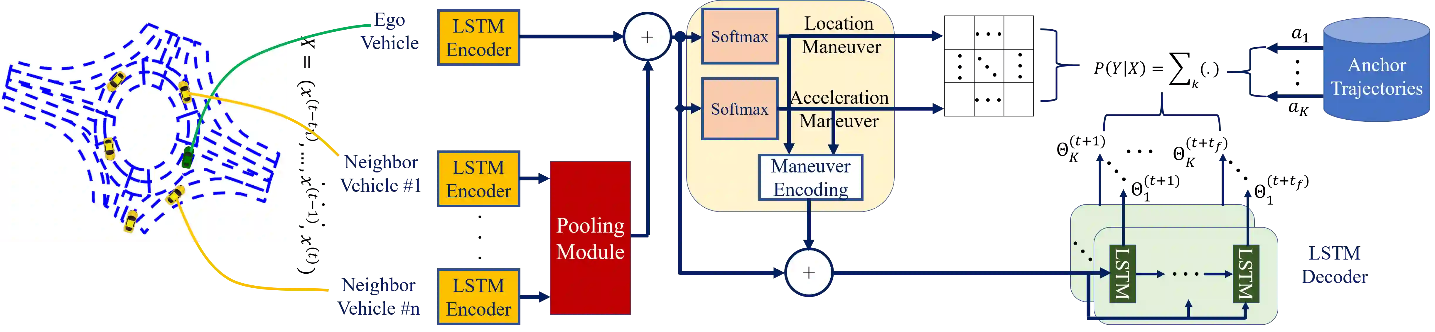 翻译:预测周围车辆的未来行为对于自驾驶平台安全通过其他交通安全航行至关重要。 这在做出类似跨过未发信号的十字路口等决定时至关重要。 我们通过学习人类驱动数据来解决在充满挑战的环绕环境中的车辆运动预测问题。 我们扩展了现有的经常性编码器解码器模型,使之与锚轨轨迹有利地结合,以预测环绕车辆的行为。 驱动器的意图通过一系列与语义驾驶概念相对应的动作来编码。 因此,我们的模型使用一套特定操作的锚轨距,覆盖环绕中可能结果的空间。 拟议的模型可以输出基于特定操作锚的预测未来轨迹的多模式分布。 我们使用公共 RounD 数据集来评估我们的模型, 实验结果显示拟议操纵锚轨迹回归在提高预测准确性、将平均 RMSE 降低到比最佳基线低28 % 。 我们的代码可以在 https://github.com/m-hasan-n/courabour 上查到。