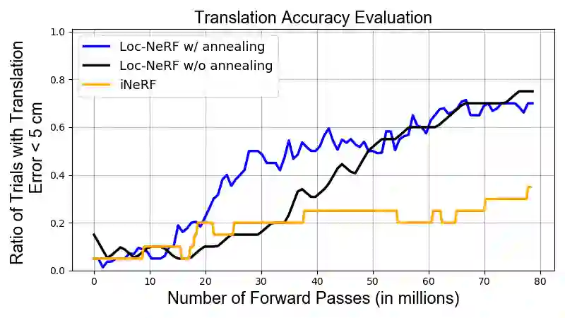 翻译:我们展示了基于实时视觉的机器人定位方法Loc-NeRF,这是将蒙特卡洛本地化和神经辐射场(NeRF)相结合的一种基于视觉的机器人实时本地化方法。我们的系统使用预先培训的NeRF模型作为环境地图,并且可以使用RGB相机作为机器人上唯一的外向感应传感器进行实时本地化。虽然神经光谱场在计算机视觉和图形中看到大量视觉显示应用,但它们发现机器人对视觉显示的用途有限。基于NeRF的本地化现有方法需要良好的初始假设和重大计算,使实时机器人应用不切实际。通过使用MonteCarlo本地化作为工作马使用NeRF地图模型进行估算,Loc-NeRF能够比艺术状态更快地进行本地化工作,而不必依靠初步的表面估计。除了对合成数据进行测试外,我们还利用由Clearpath Jackal UGV 收集到的真实数据运行我们的系统,并首次展示了用神经焦能/MINGRF/NECO 进行实时全球本地化的能力。我们在 http://SRK-RBRF/RF上公开提供我们的代码。