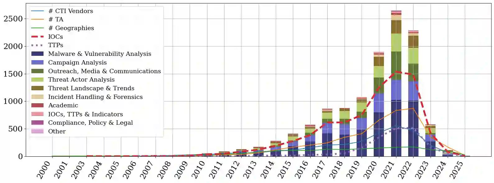 翻译:尽管开源网络威胁情报(CTI)数量庞大,但由于缺乏结构化数据集和报告标准不一致,我们对长期威胁行为者-受害者动态的理解仍然碎片化。本文对跨越二十年的开源CTI报告进行了大规模自动化分析。我们开发了一个基于大语言模型的高精度处理流程,对13,308份报告进行结构化处理,提取关键实体,包括归因威胁行为者、动机、受害者、报告厂商以及技术指标(IoCs与TTPs)。我们的分析量化了CTI信息密度与专业化的演变过程,刻画了特定威胁行为者与动机、受害者画像之间的关联模式。此外,我们对CTI行业本身进行了元分析。我们发现了一个由独立信息孤岛构成的碎片化生态系统,其中厂商报告呈现出显著的地域与行业偏见。我们的边际覆盖分析表明,厂商间情报重叠率普遍较低:少数核心供应商可能提供广泛的态势感知,但增加情报来源带来的边际收益递减。总体而言,我们的研究揭示了CTI生态系统固有的结构性偏见,有助于从业者和研究者更准确地评估其情报来源的完备性。