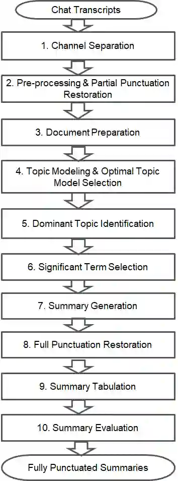 Text summarization is the process of condensing a piece of text to fewer sentences, while still preserving its content. Chat transcript, in this context, is a textual copy of a digital or online conversation between a customer (caller) and agent(s). This paper presents an indigenously (locally) developed hybrid method that first combines extractive and abstractive summarization techniques in compressing ill-punctuated or un-punctuated chat transcripts to produce more readable punctuated summaries and then optimizes the overall quality of summarization through reinforcement learning. Extensive testing, evaluations, comparisons, and validation have demonstrated the efficacy of this approach for large-scale deployment of chat transcript summarization, in the absence of manually generated reference (annotated) summaries.